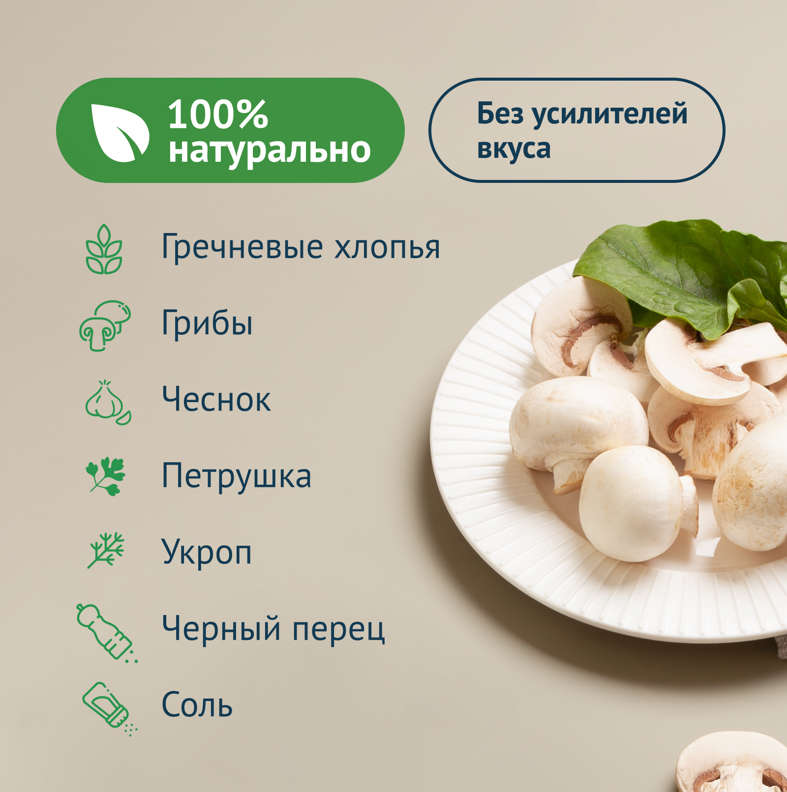Каша гречневая быстрого приготовления с грибами, Гудвилл, 17 пакетиков по 40 г информация: