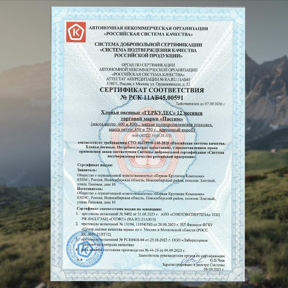 Геркулес хлопья овсяные 12 месяцев пассим отборное качество, 400 г информация: