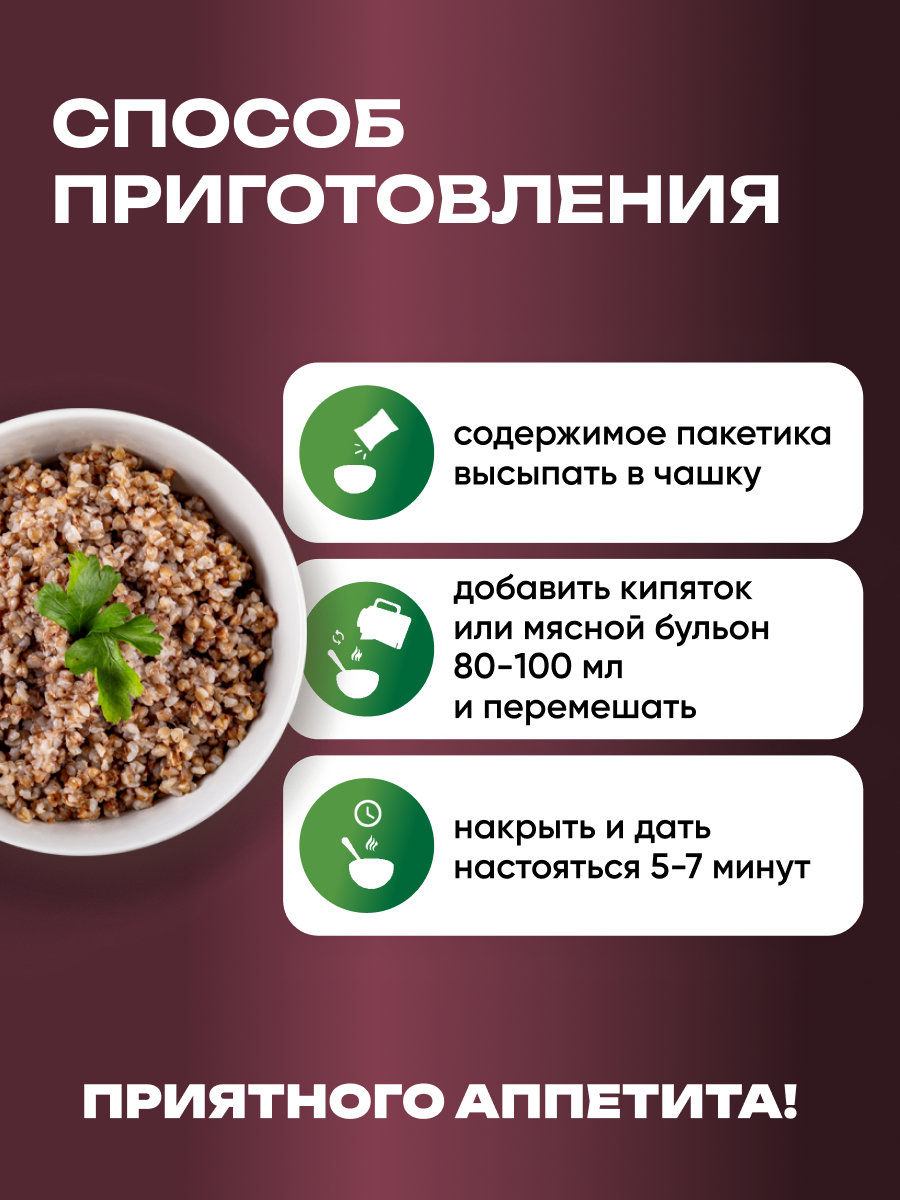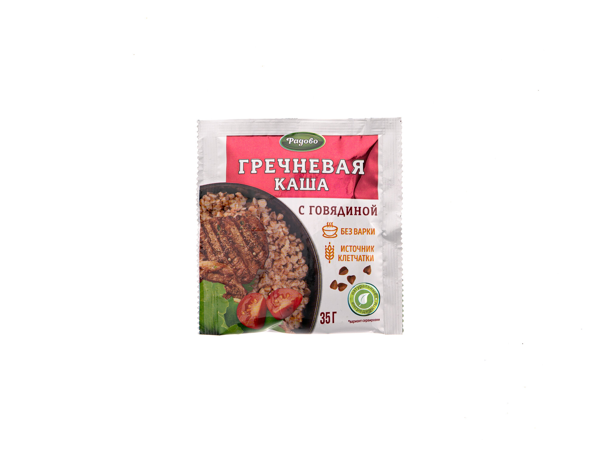 Каша гречневая "Радово" Ассорти со вкусом говядины/курицы, без варки, 30шт информация: