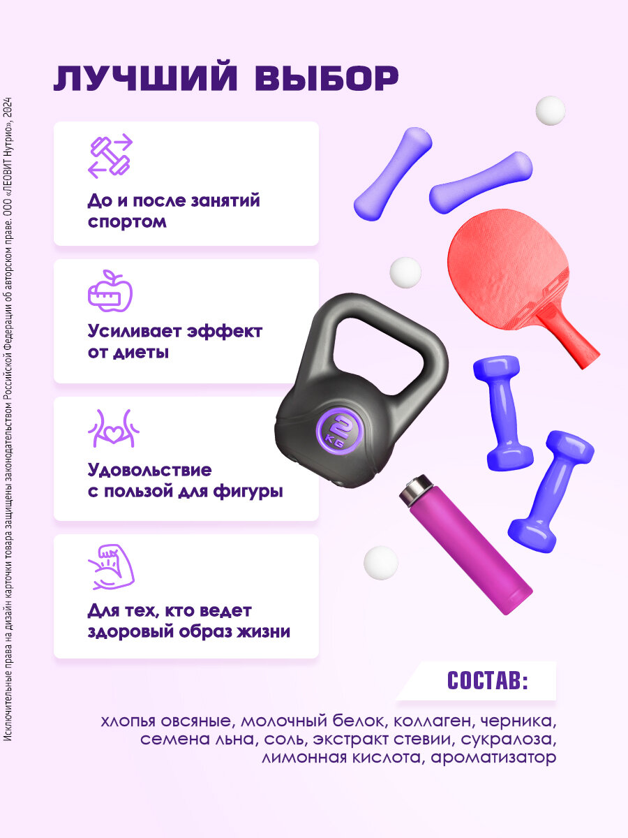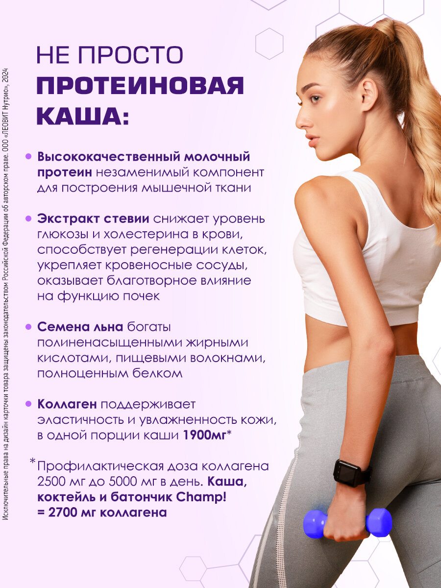Каша протеиновая овсяная без сахара с черникой 10 шт с коллагеном Champ ЛЕОВИТ 20% протеина быстрого приготовления информация: