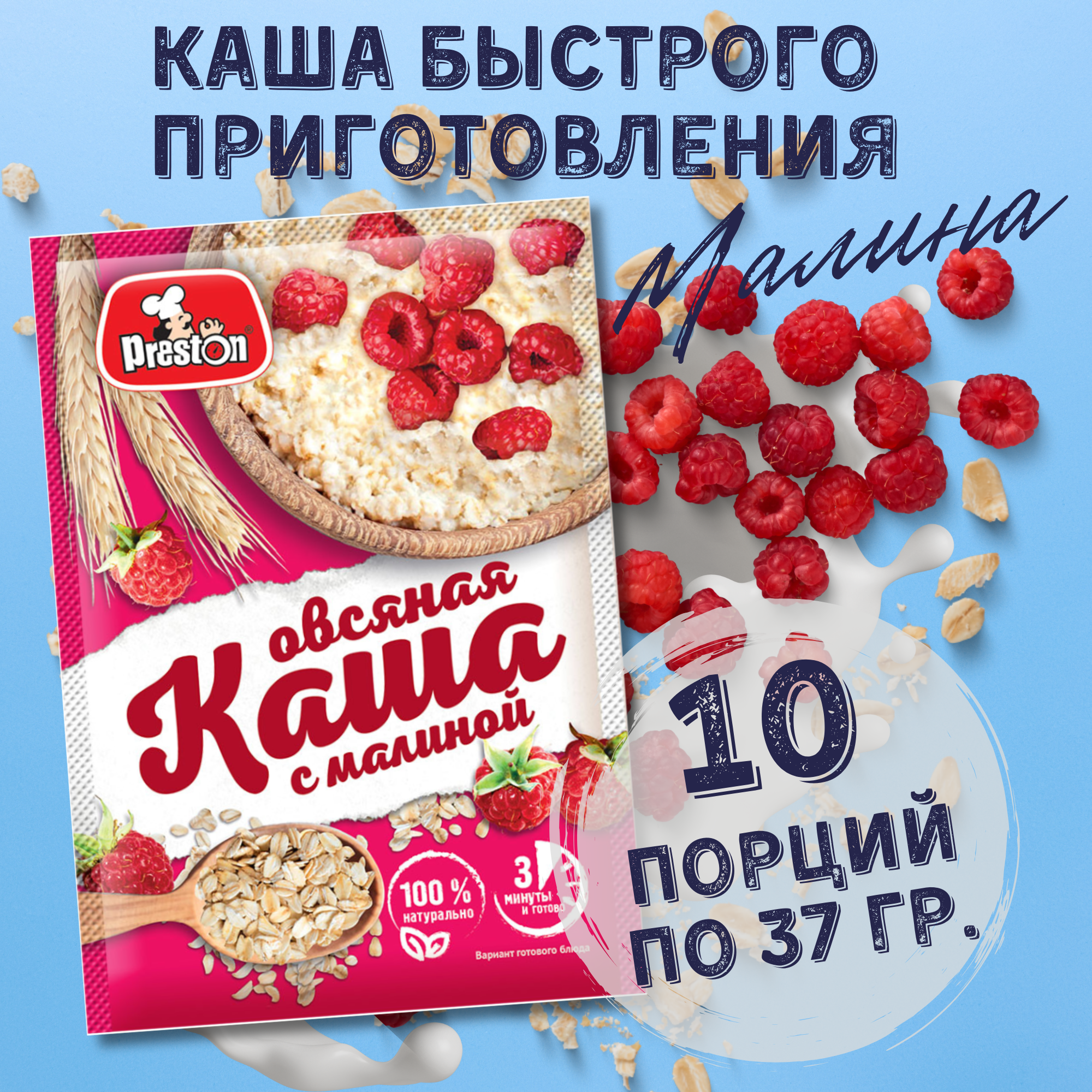 10 цен на Каша овсяная быстрого приготовления Preston c малиной, в пакетиках 37 г, 10 шт.