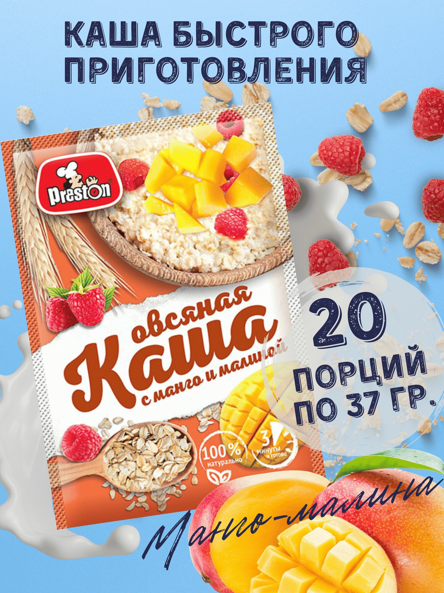 10 цен на Каша овсяная быстрого приготовления Preston манго-малина, в пакетиках 37 г х 20 шт.
