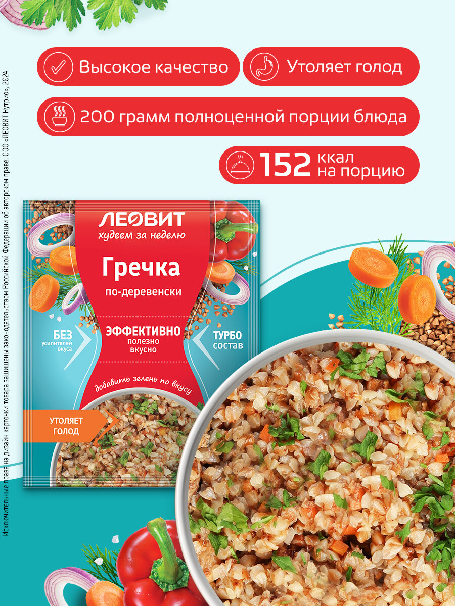 Гречка по-деревенски 5 шт по 50 гр Худеем за неделю ЛЕОВИТ каша быстрого приготовления в пакетиках без варки информация: