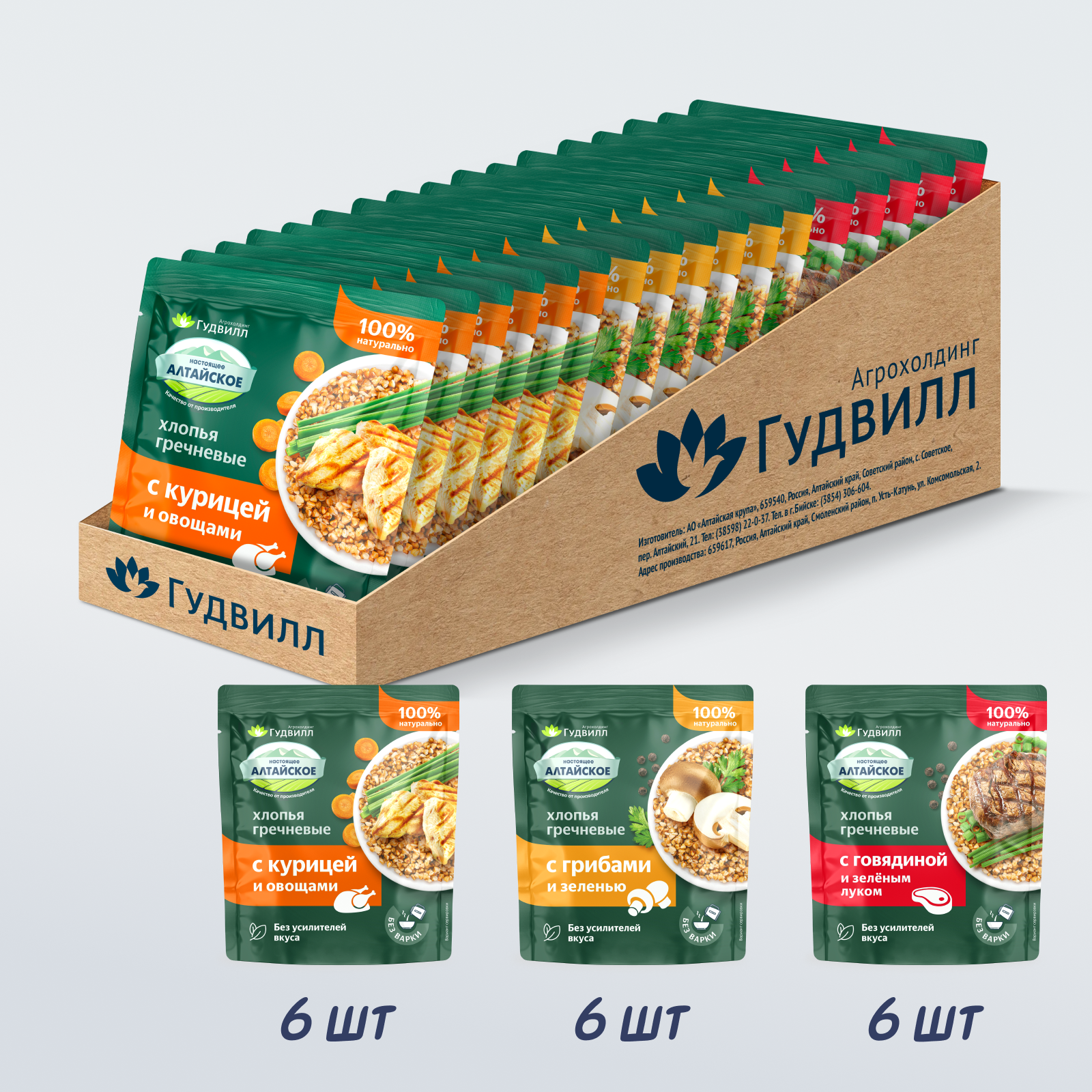 10 цен на Каша гречневая 3 вкуса (Микс №3) Гудвилл 18 пакетиков по 40 г