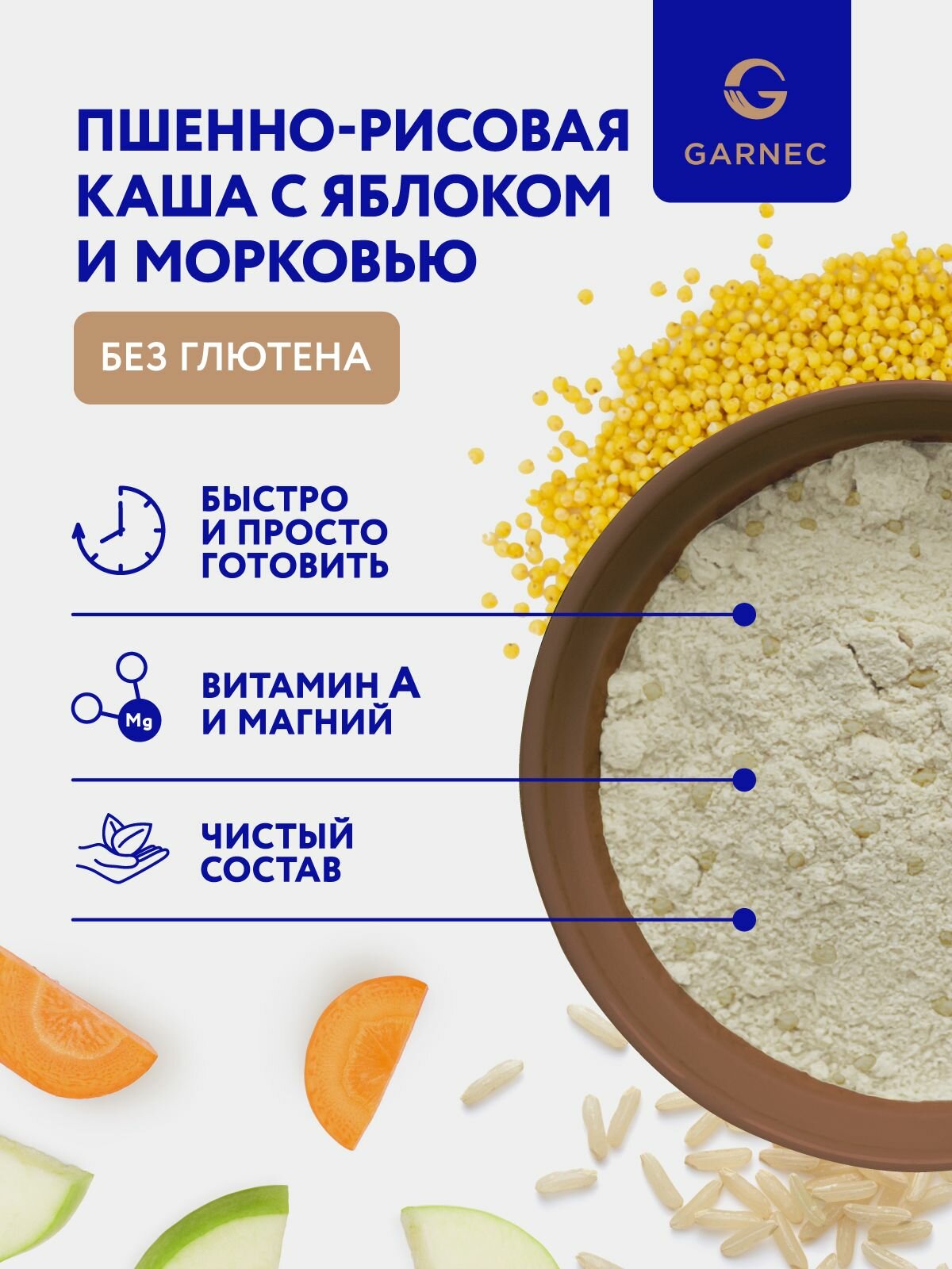 Каша пшенно-рисовая с яблоком и морковью Garnec без глютена без сахара 200 г x 3 шт информация: