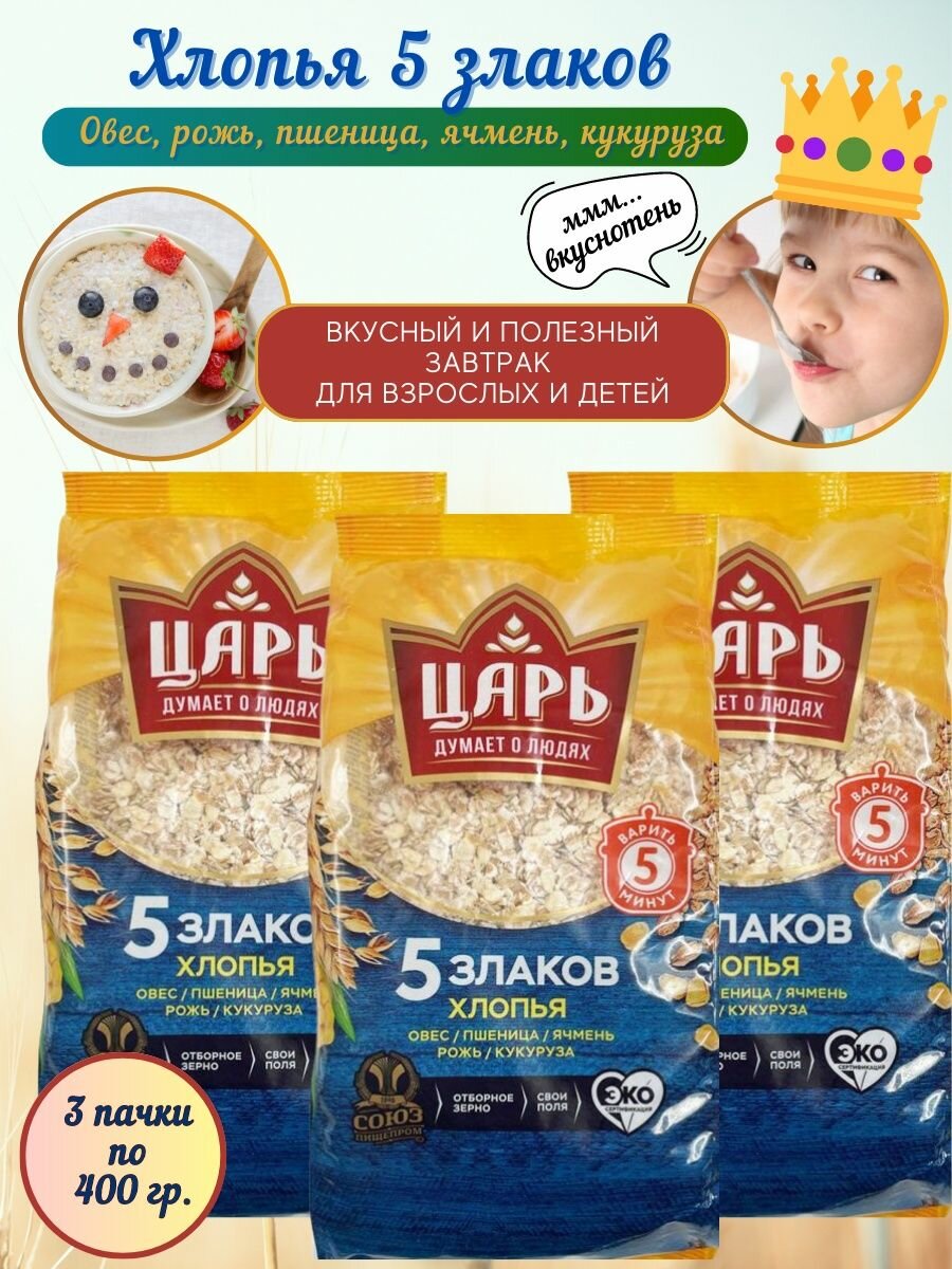 Царь Хлопья 5 злаков 3 упаковки по 400гр информация:
