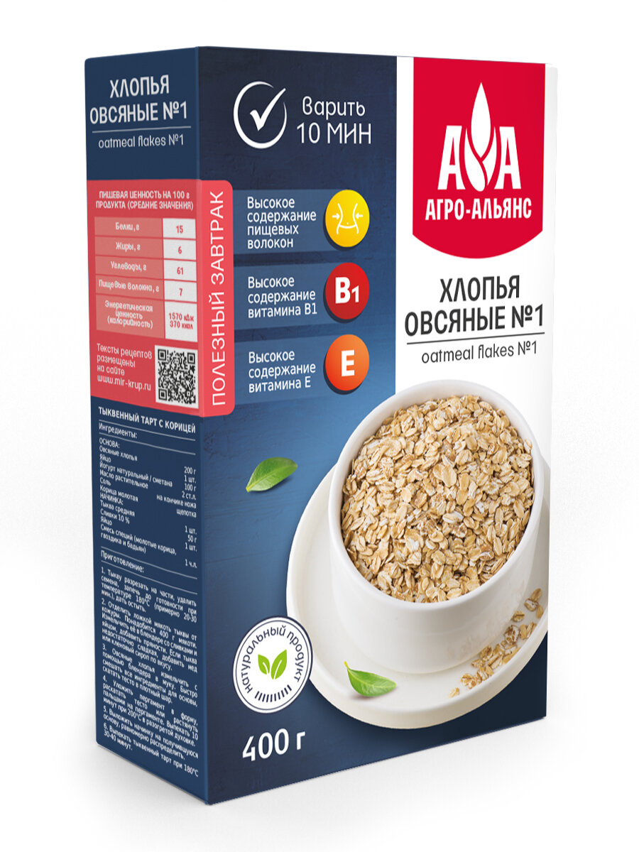 Хлопья овсяные №1 (крупный размер) Агро-Альянс Экстра 400 г информация: