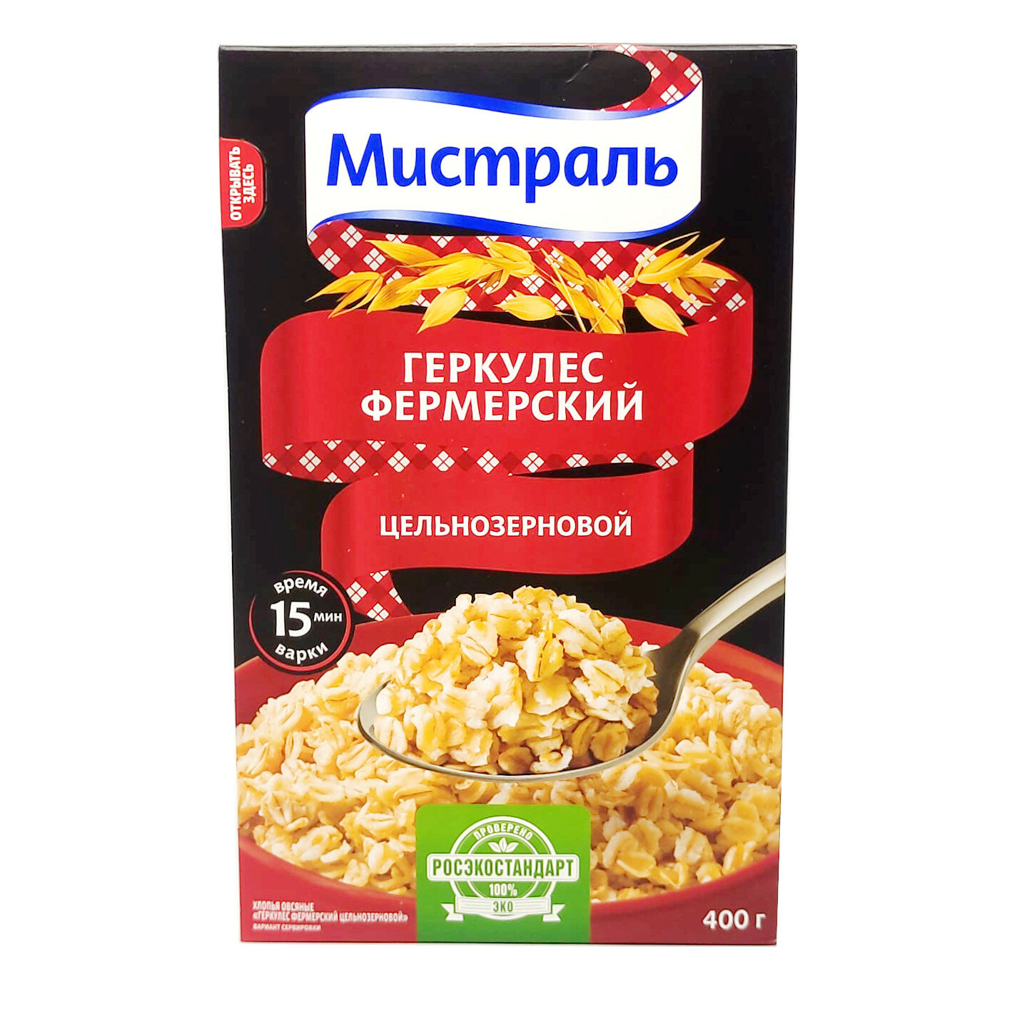 Хлопья Мистраль Фермерские цельнозерновые: Кукурузные (400 г * 2 шт) и Геркулес (400 г * 2 шт) информация: