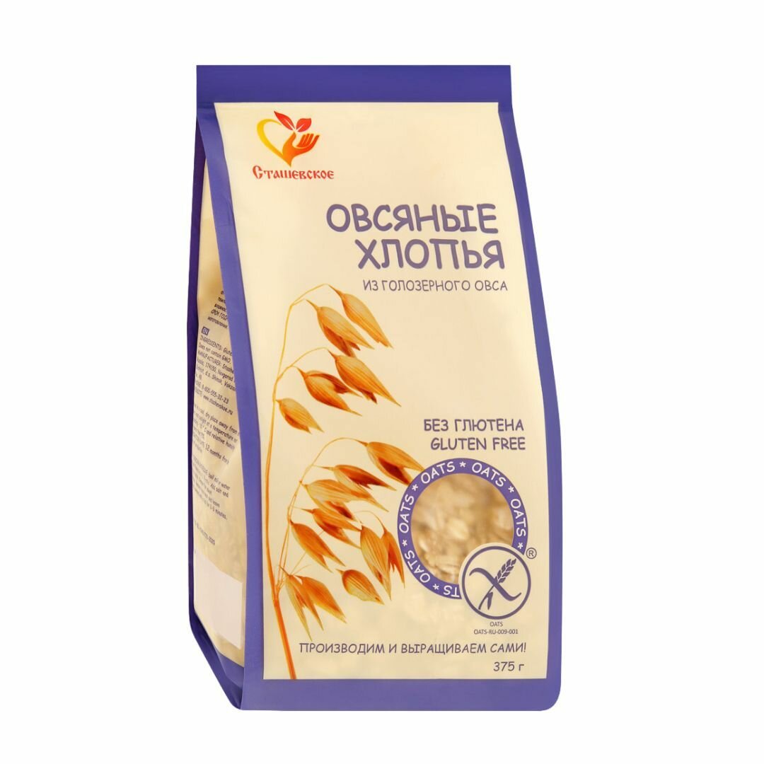Хлопья овсяные из голозёрного овса натуральные, без глютена 375 гр, Сташевское информация: