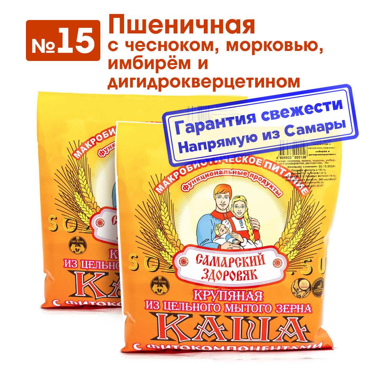 Каша "Самарский Здоровяк” №15 Пшеничная с чесноком, имбирём и дигидрокверцетином (для иммунитета), 240 г х 2 шт информация: