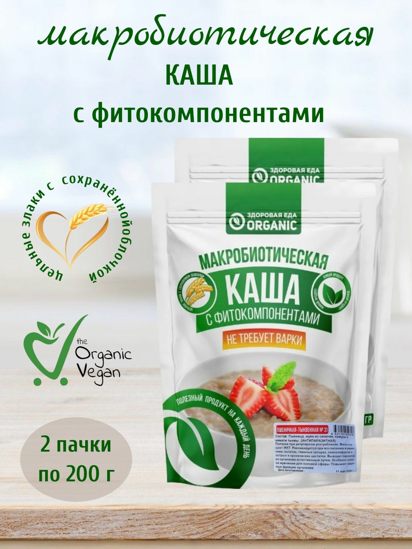 Макробиотическая каша №31 Пшеничная-Тыквенная, 2 шт по 200 г, Organic Здоровая еда информация: