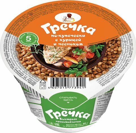Каша в стакане "Гречка по купечески с курицей и чесноком" 3 шт. по 40г информация: