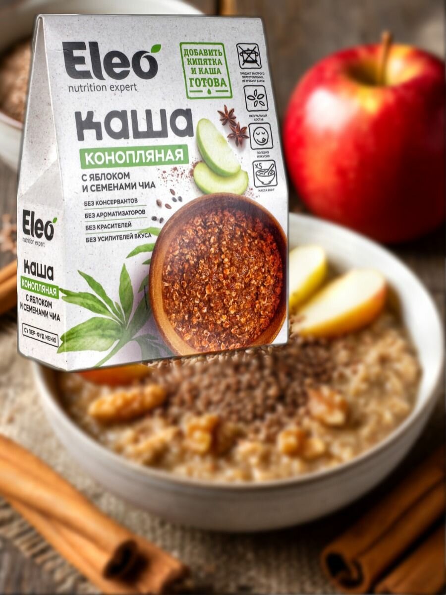 Каша Eleo ассорти: конопляная с яблоком и семенами чили, льняная, овсяная тыквенная 5х40 гр (3 уп) 1 125 ₽