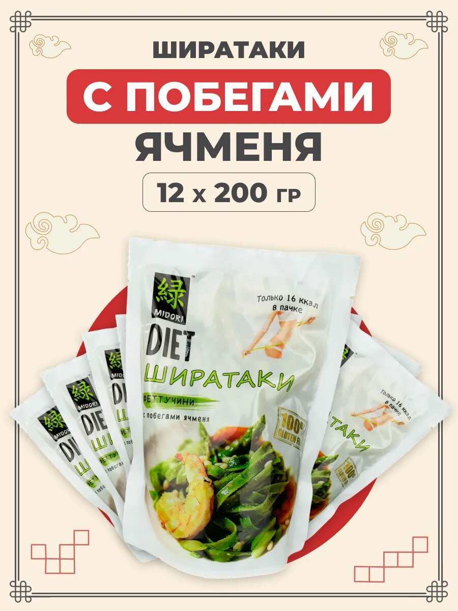 10 цен на MIDORI / Лапша Ширатаки Феттуччине с побегами ячменя, без глютена, 200 г х 12 пачек