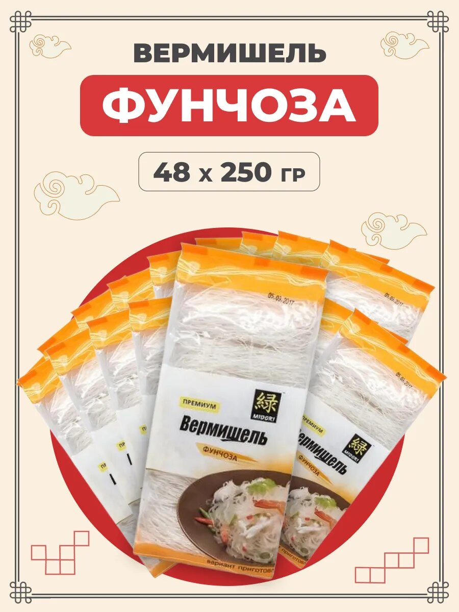 Midori Вермишель фунчоза бобовая 48 пачек по 250 г информация: