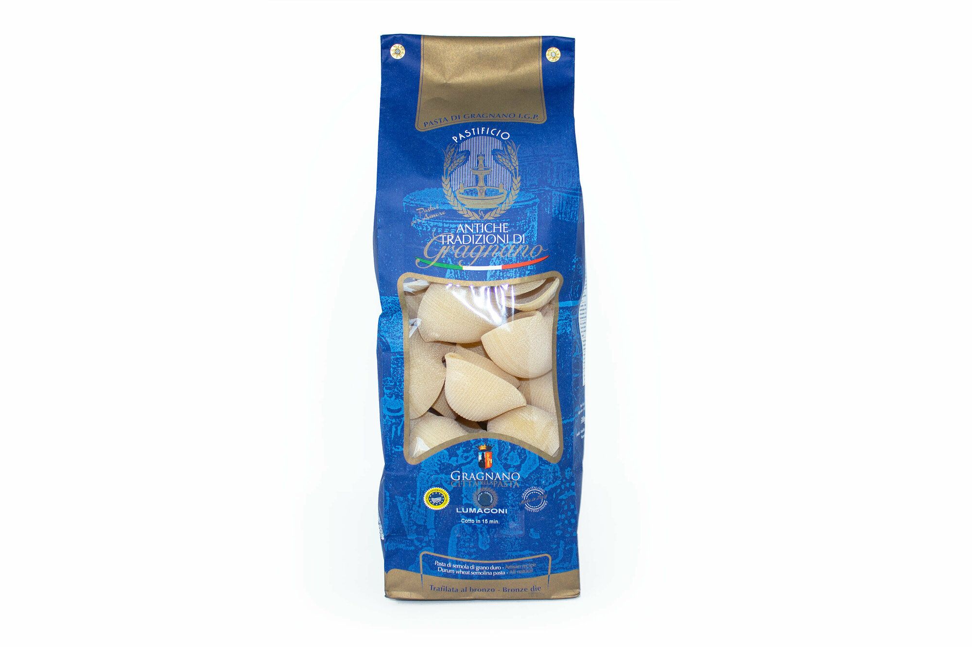 Лумакони, паста из твердых сортов пшеницы из Граньяно IGP, ANTICHE TRADIZIONI DI GRAGNANO, 0,5 кг информация: