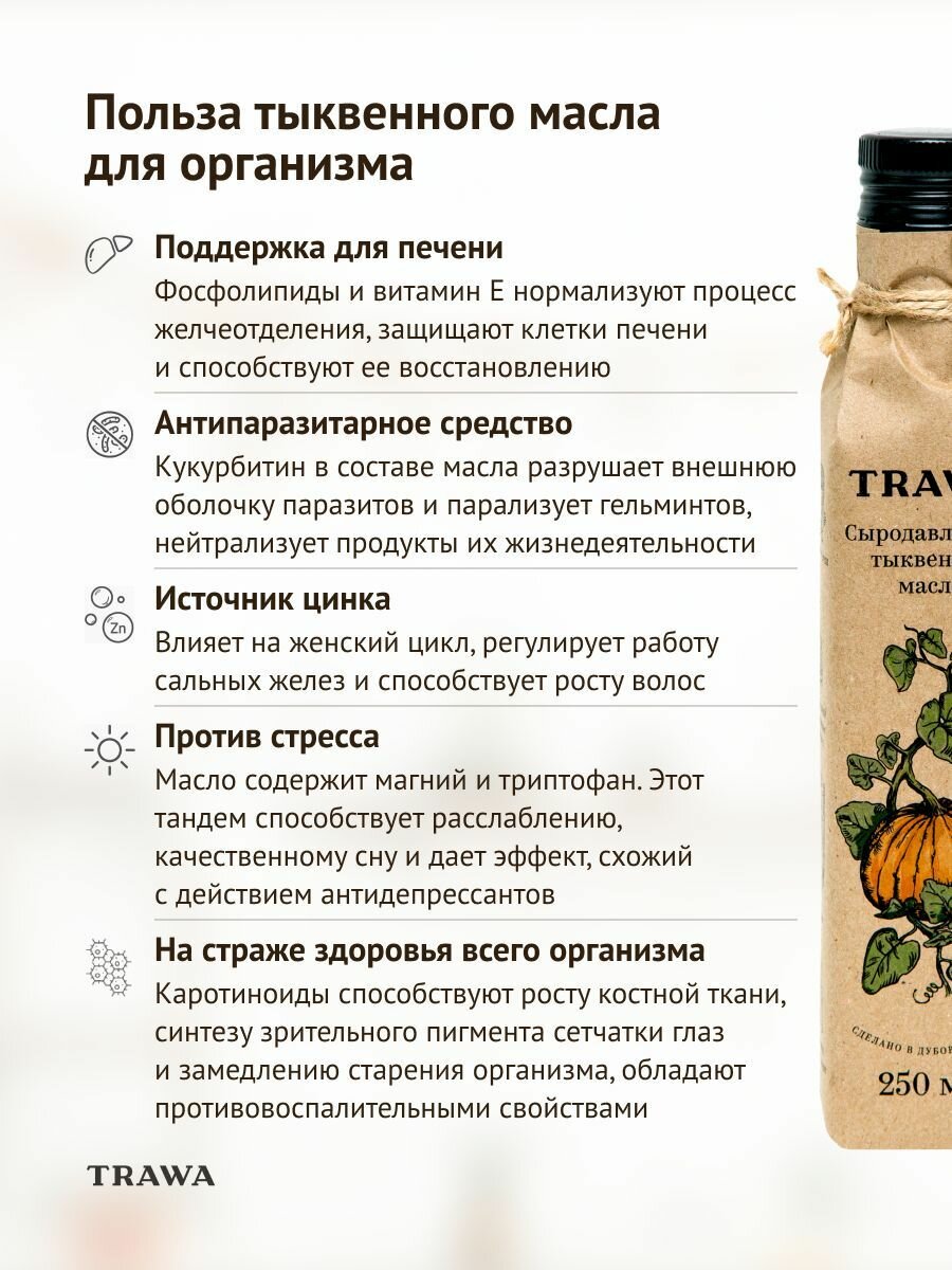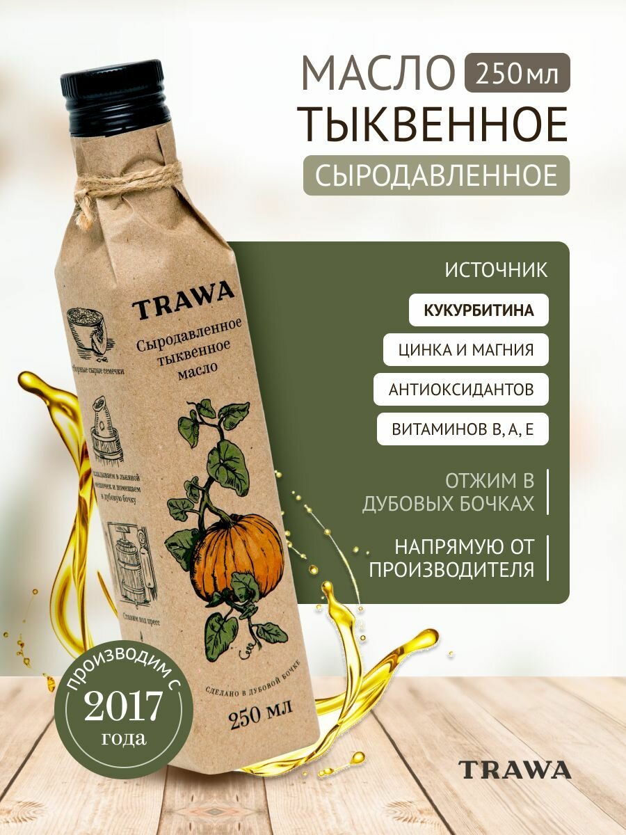TRAWA Масло тыквенное сыродавленное 250 мл / Нерафинированное / Холодный отжим информация: