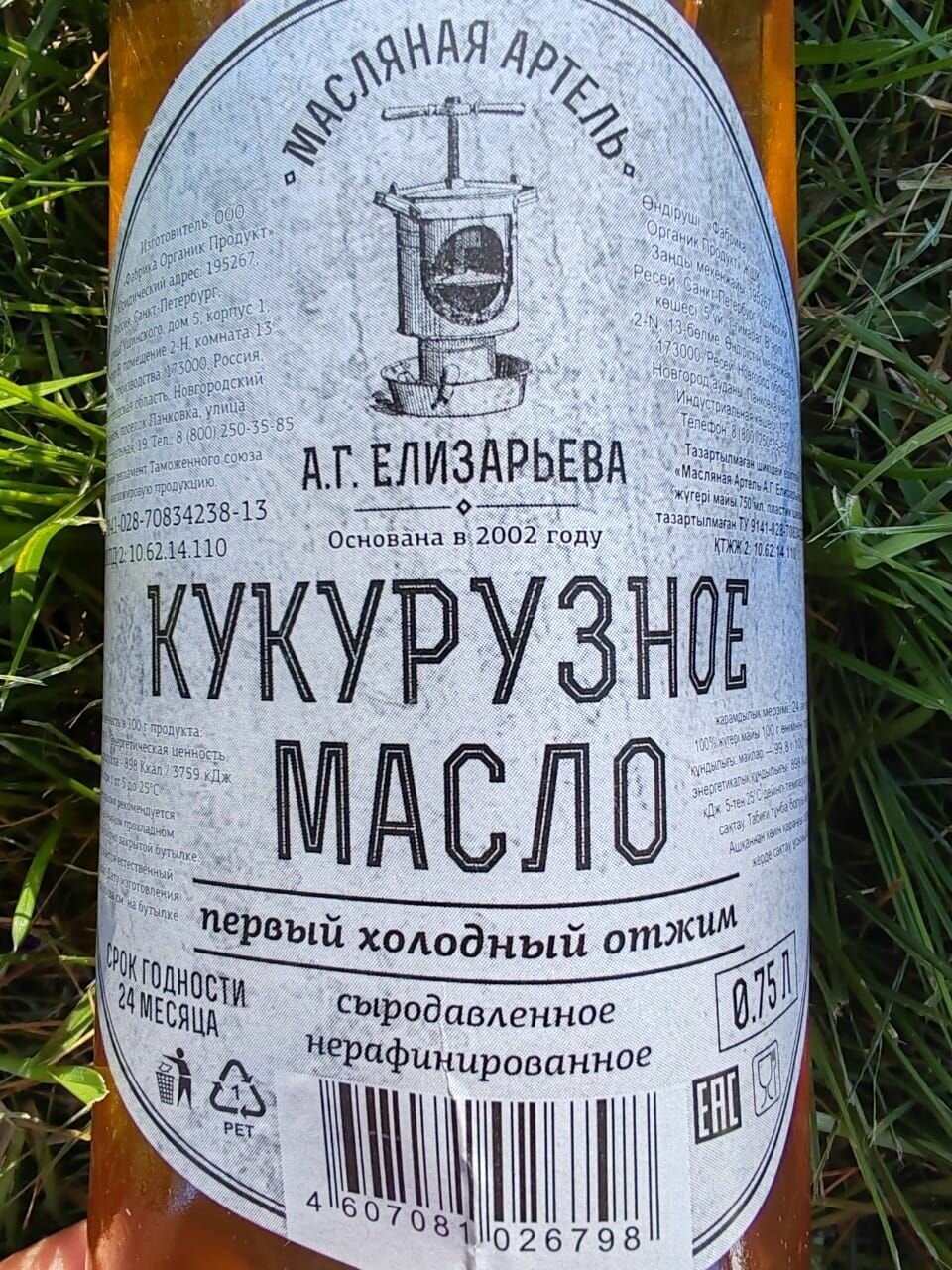 Масло кукурузное фермерское Масляная Артель А. Г. Елизарьева 0,75л информация: