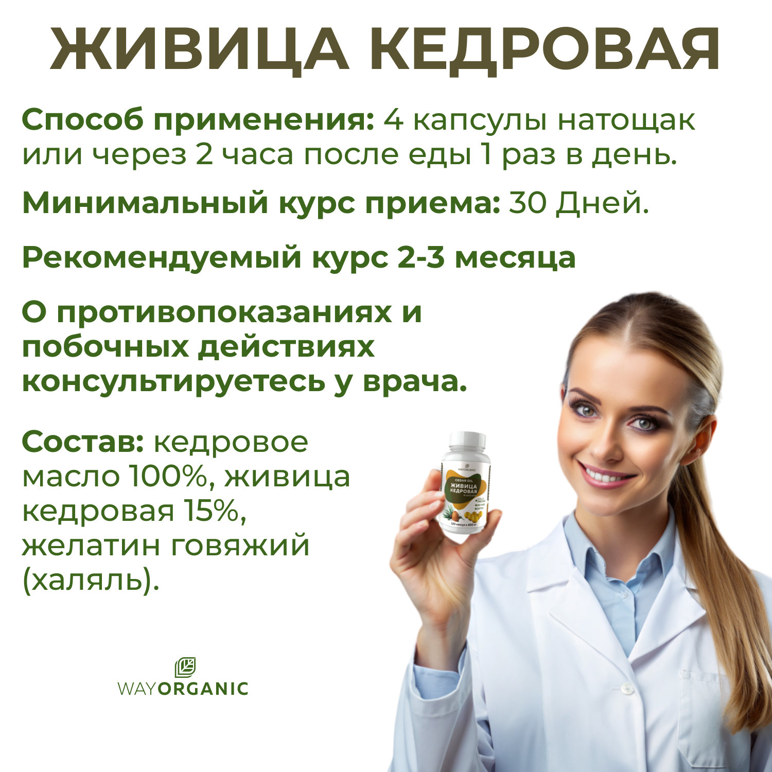 10 цен на Живица кедровая на кедровом масле в капсулах WAY ORGANIC,120 шт. по 400 мг. пищевая добавка