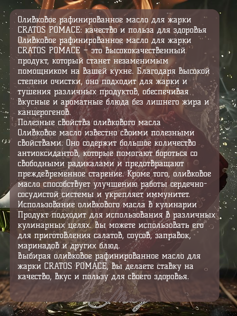 Масло оливковое рафинированное CRATOS Pomace 1000 ml информация:
