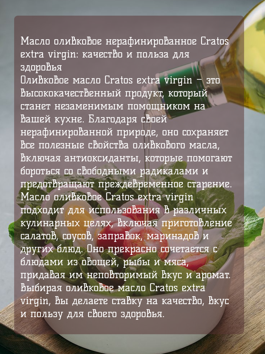 Масло оливковое нерафинированное CRATOS Extra Virgin 1000 ml информация: