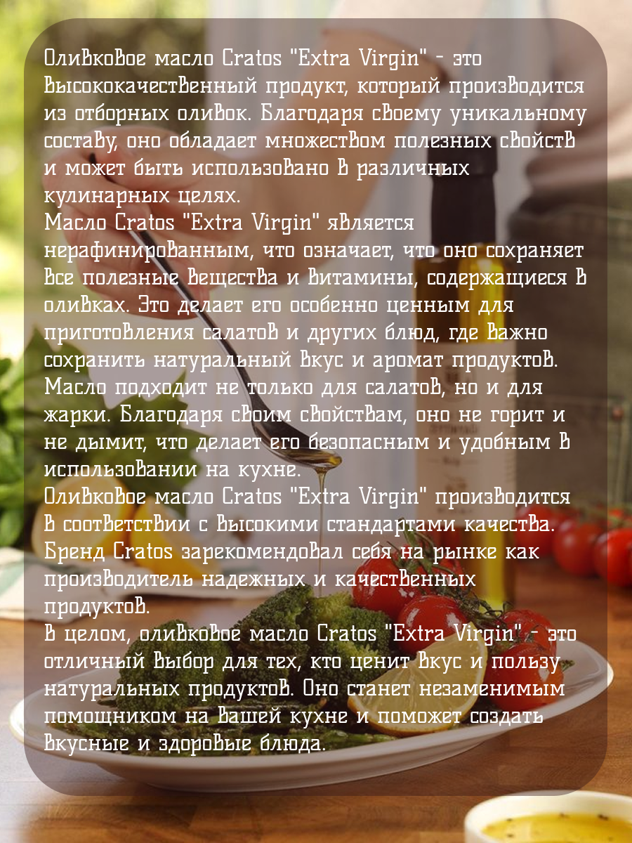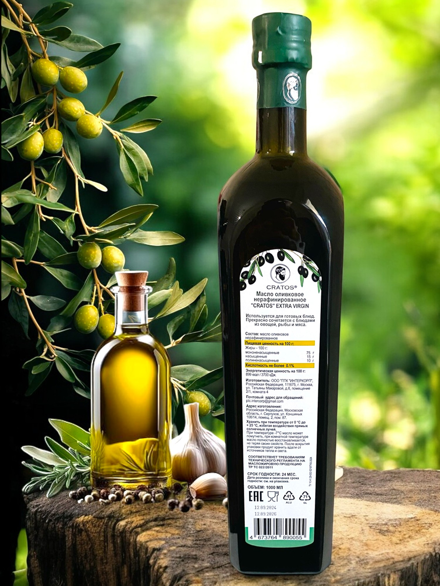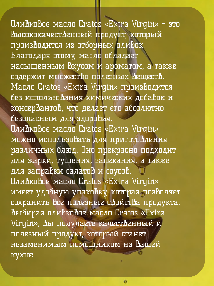 Масло оливковое CRATOS Extra Virgin, нерафинированное, 1000 мл информация: