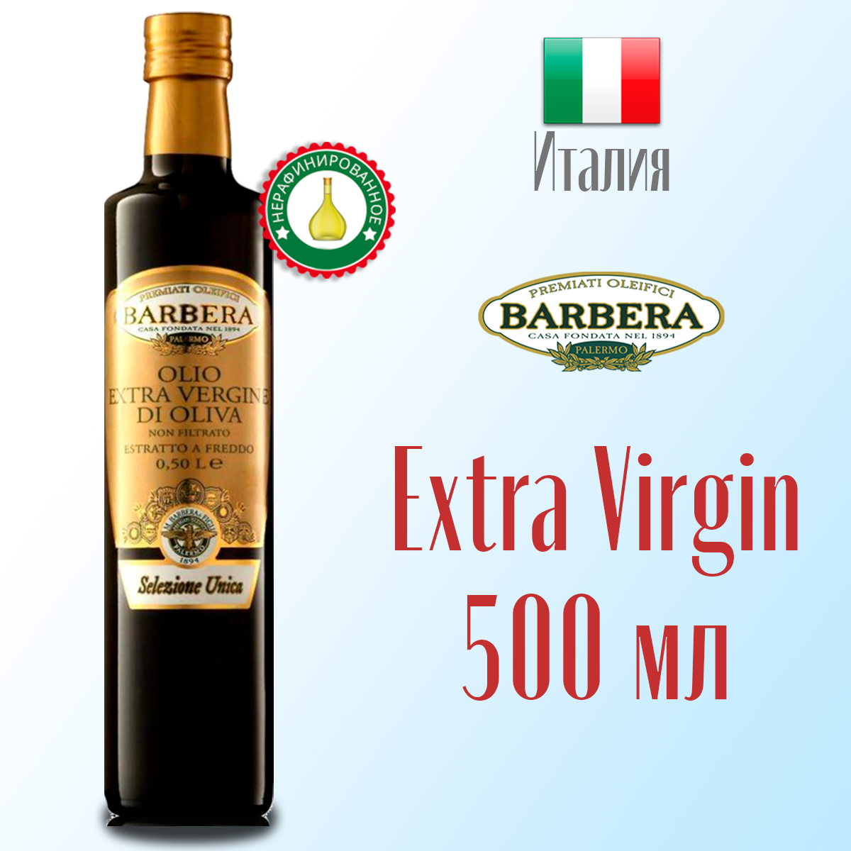 Масло оливковое Extra virgin Barbera Selezione Unica нерафинированное, холодный отжим 500 мл стекло, Италия информация: