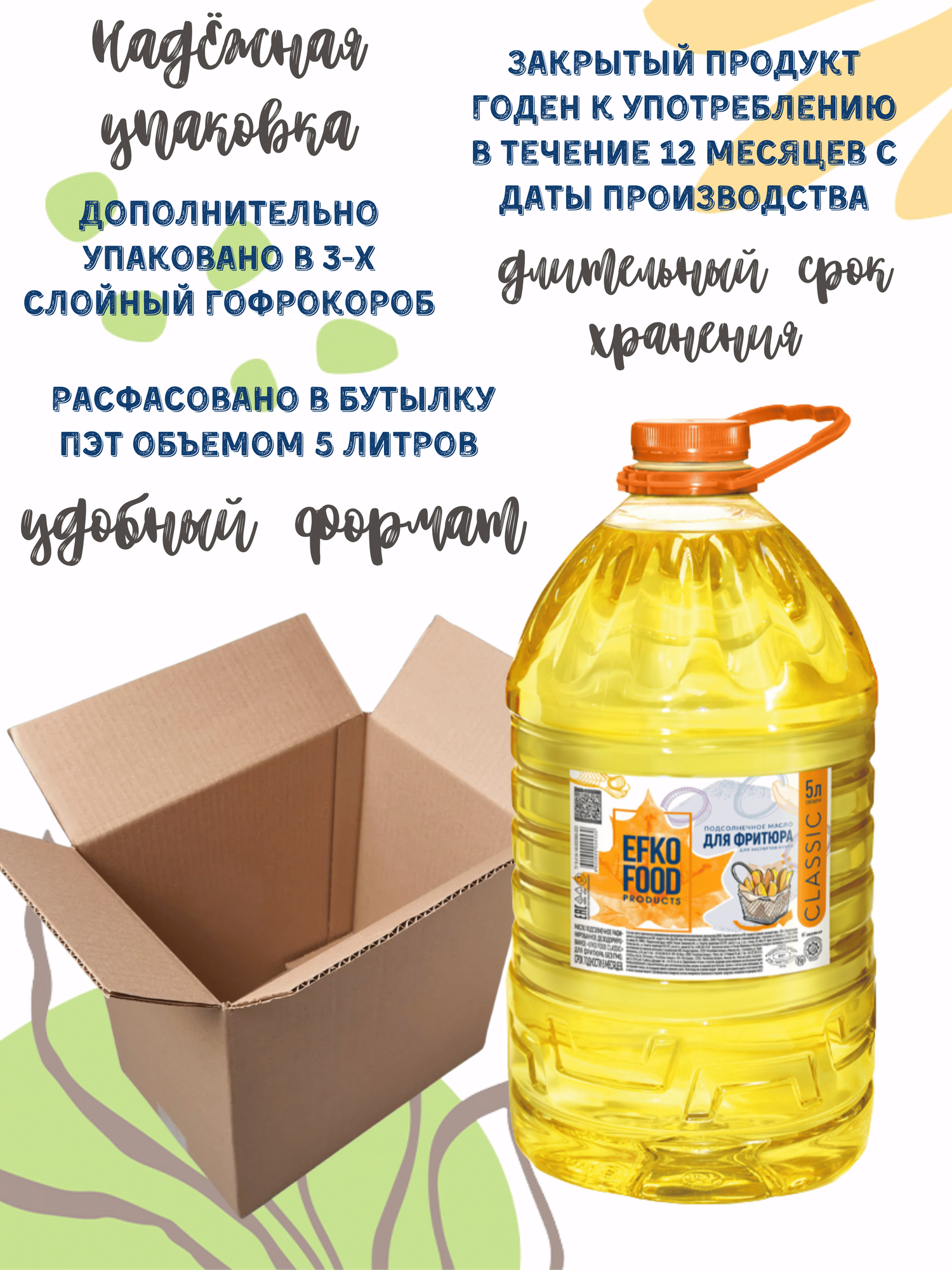 Масло подсолнечное "Efko Food "Professional", для фритюра 5 л. информация: