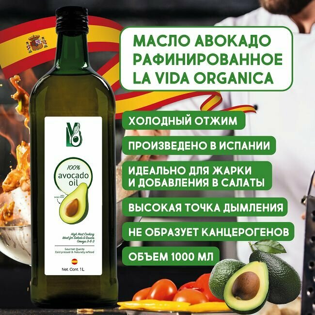 10 цен на Масло Авокадо 1 литр Рафинированное из Испании, холодный отжим, для салатов, для жарки, для еды, пищевое, LVO