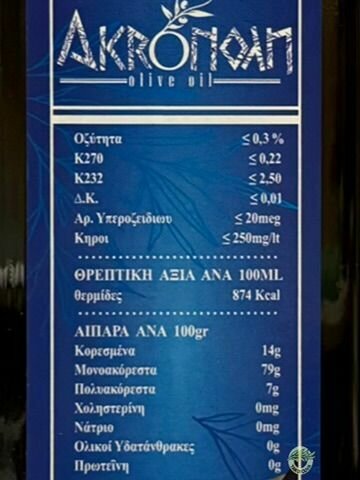 Оливковое масло Extra Virgin Akropol нерафинированное для салата, Греция, 500 мл информация: