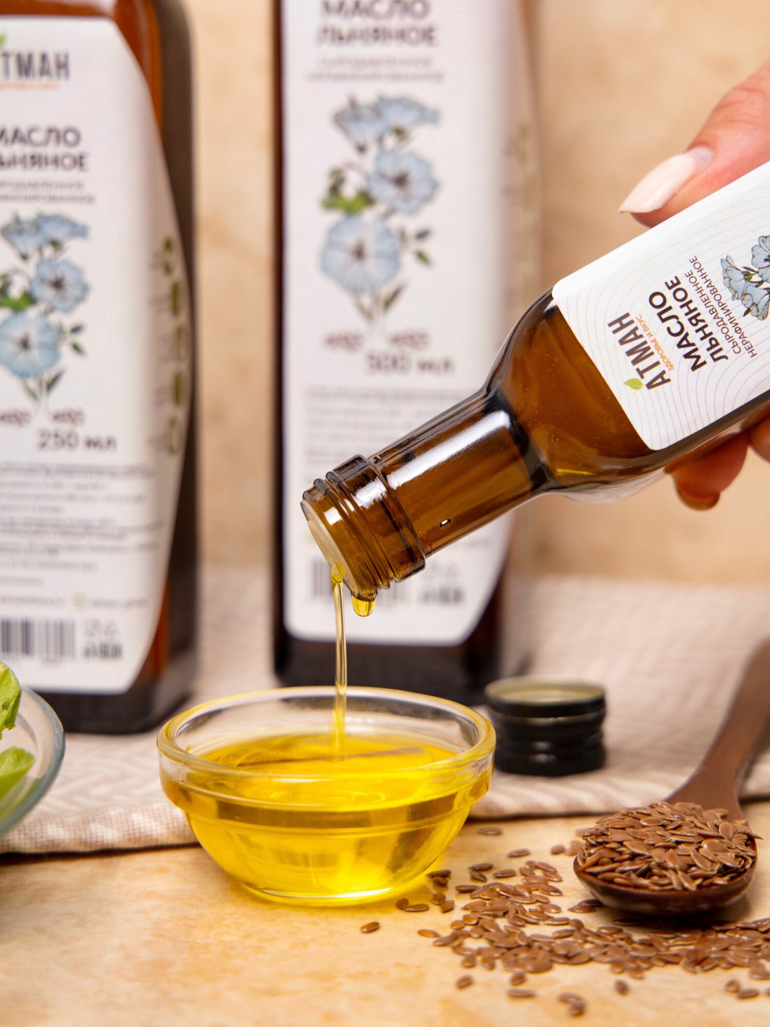 10 цен на Льняное масло сыродавленное нерафинированное растительное, правильное питание в пост, АТМАН, 100мл