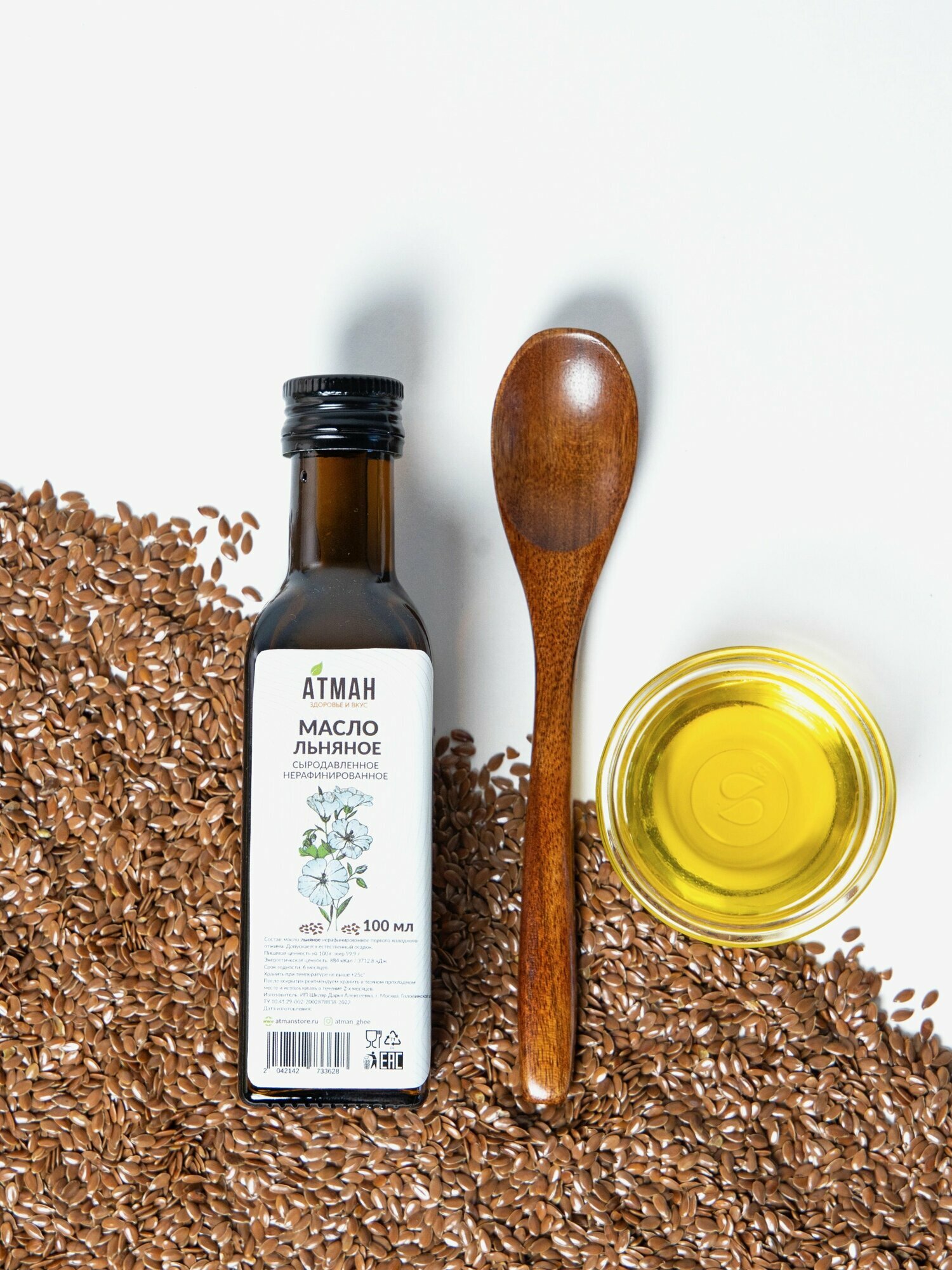 Льняное масло сыродавленное нерафинированное растительное, правильное питание в пост, АТМАН, 100мл информация: