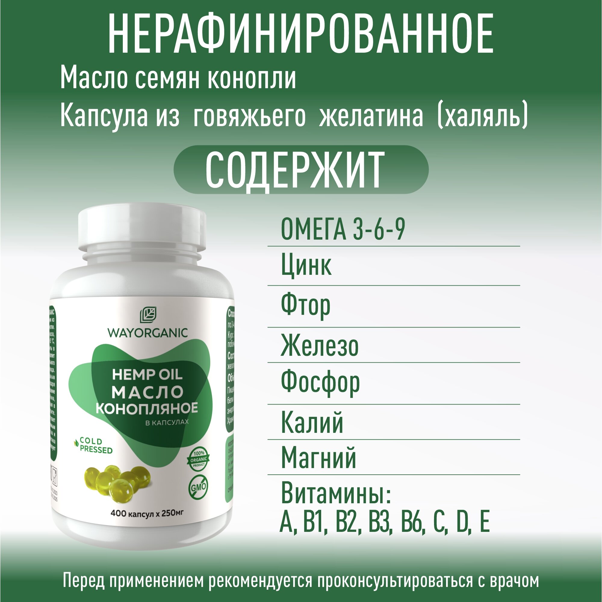 Конопляное масло WAYORGANIC в капсулах 400 штук информация: