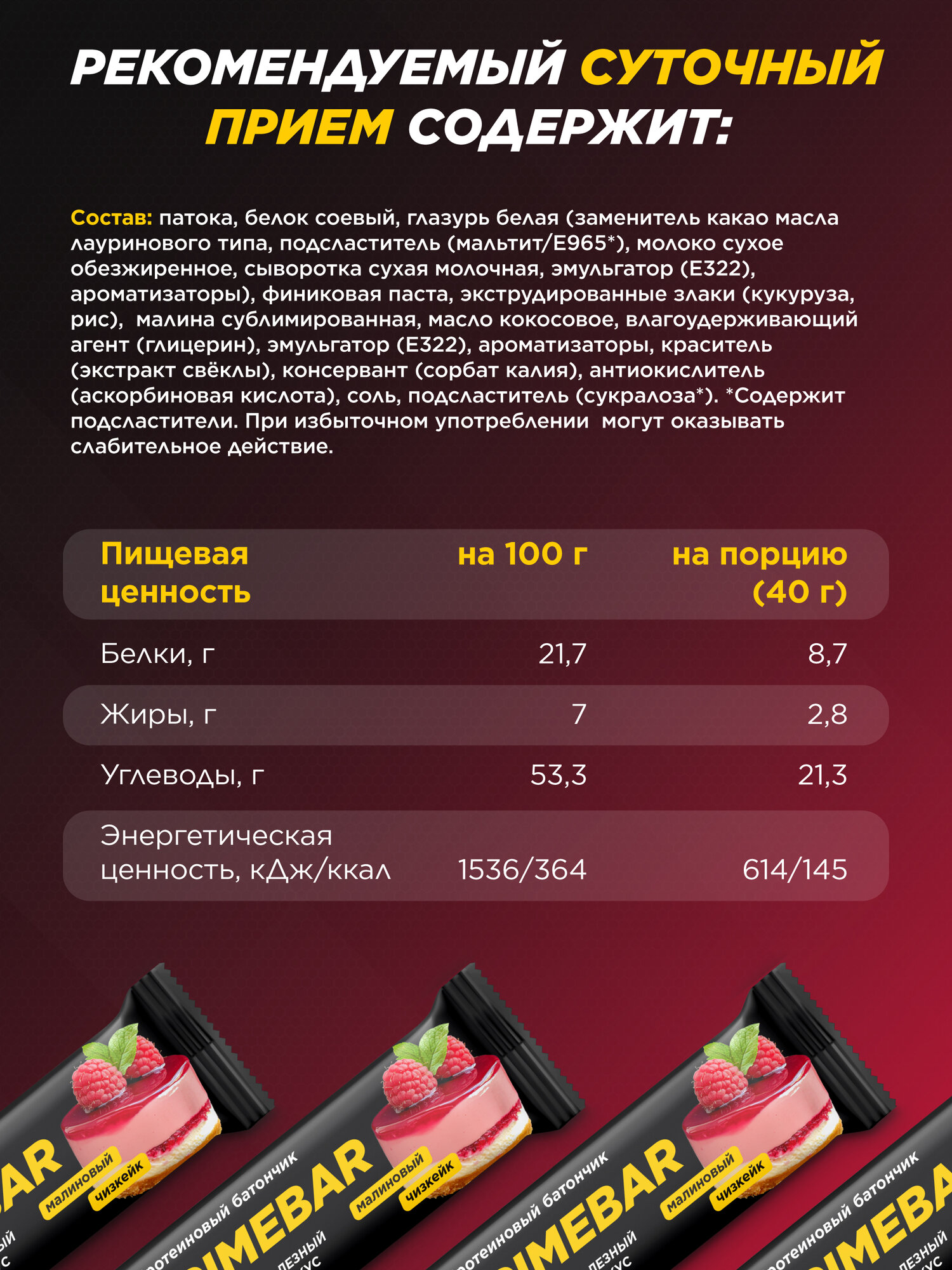 Протеиновый батончик PRIMEBAR Малиновый Чизкейк, без сахара, 40 г, 15 штук информация: