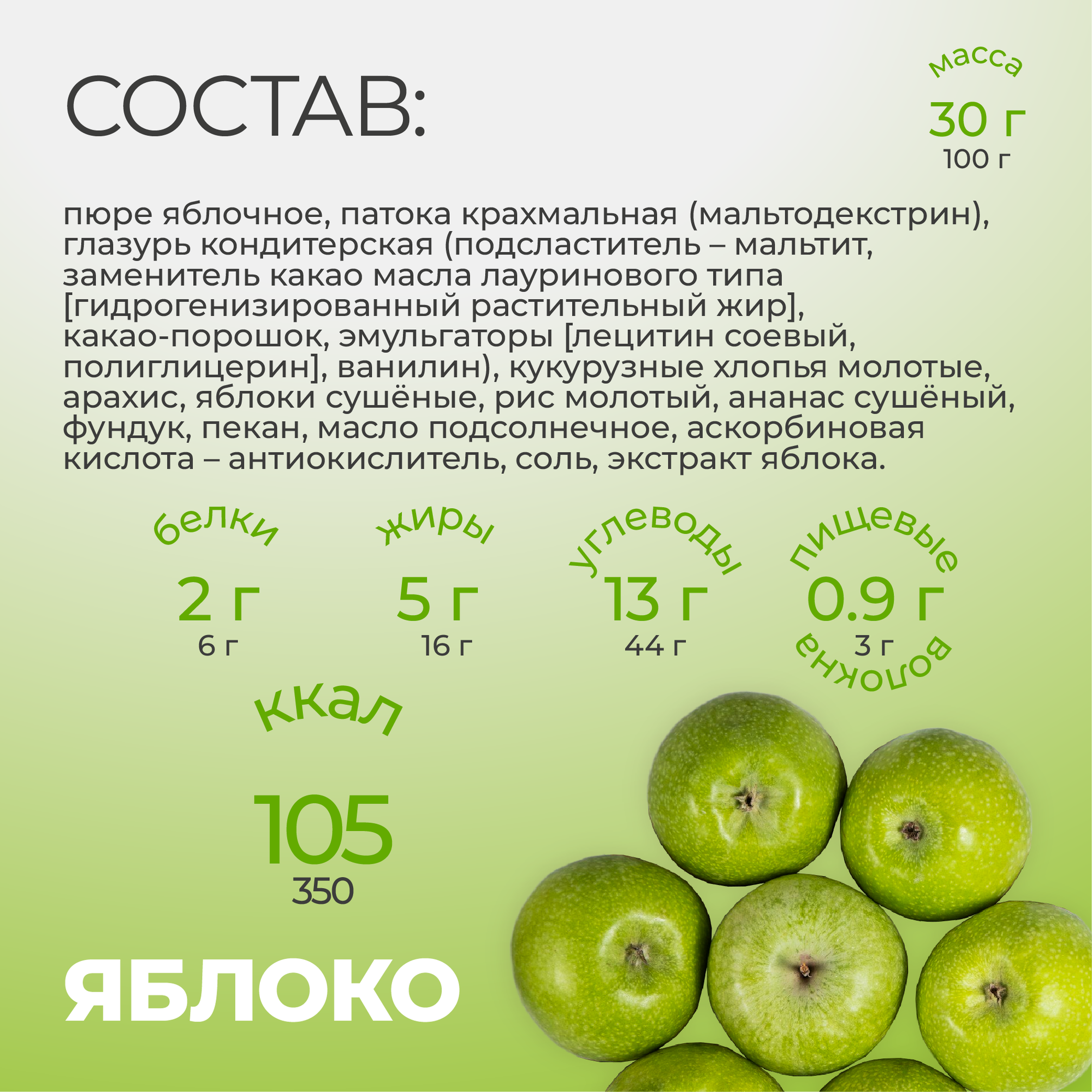 Батончик-десерт фруктово-ореховый без сахара "Яблоко" PRO Dessert 30г. (7шт) информация: