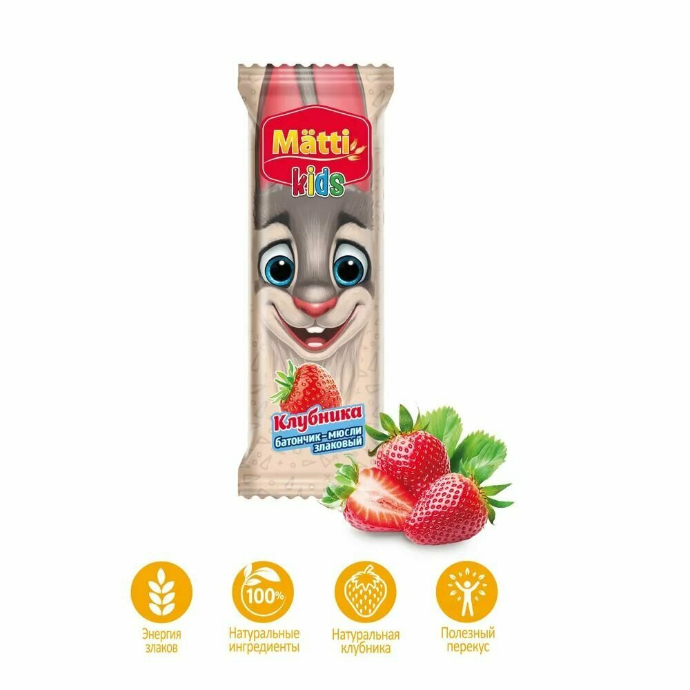 10 цен на Злаковые батончики-мюсли MATTI KIDS клубника 24 г х 24 штуки, снэки на перекус