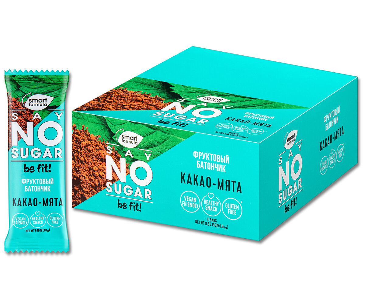 Батончик без сахара Smart Formula SAY No Sugar "Какао-Мята" 40 г, 15 шт. информация: