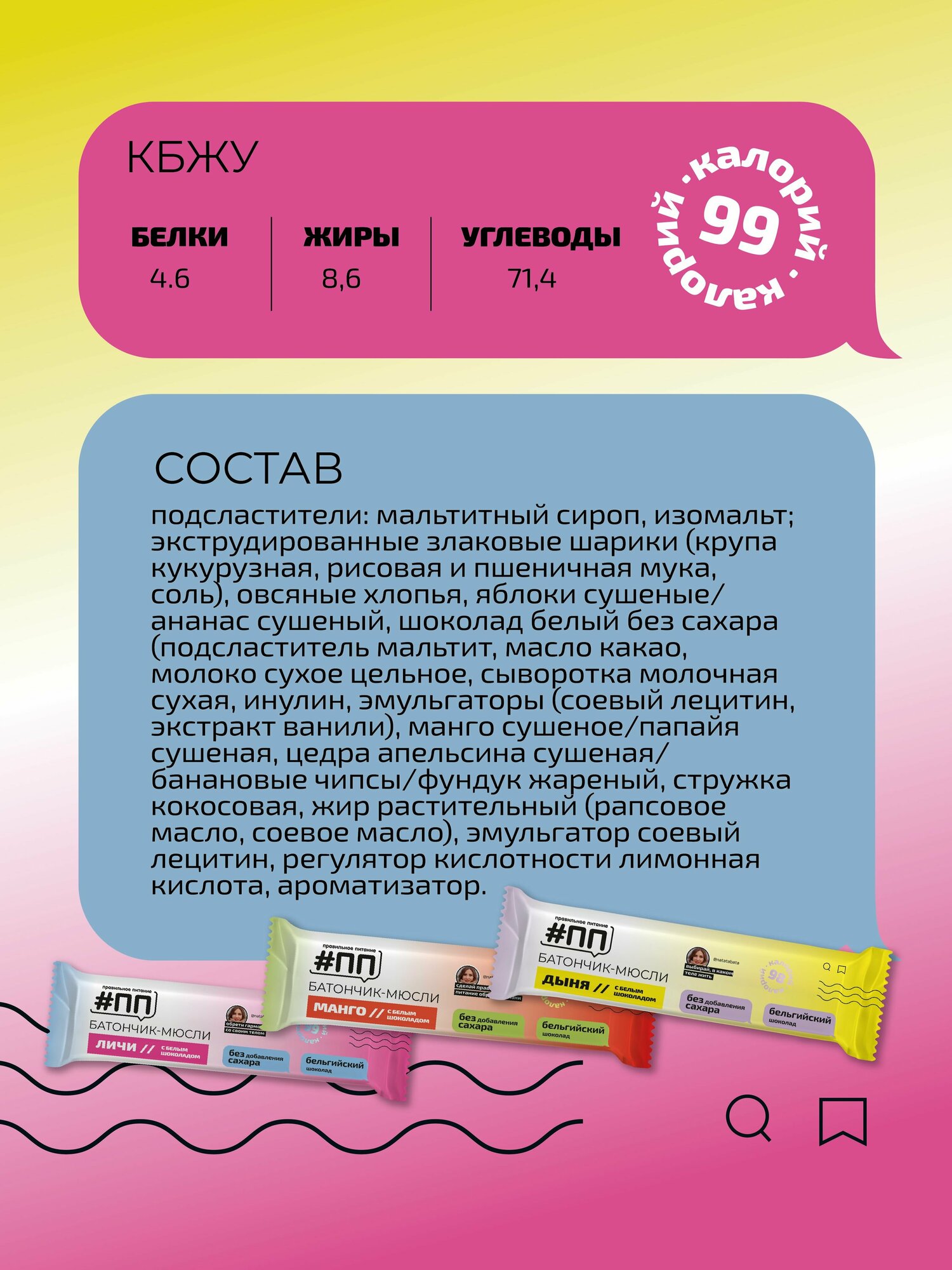 10 цен на Батончики мюсли без сахара Ассорти с белым бельгийским шоколадом 6 шт по 30 гр