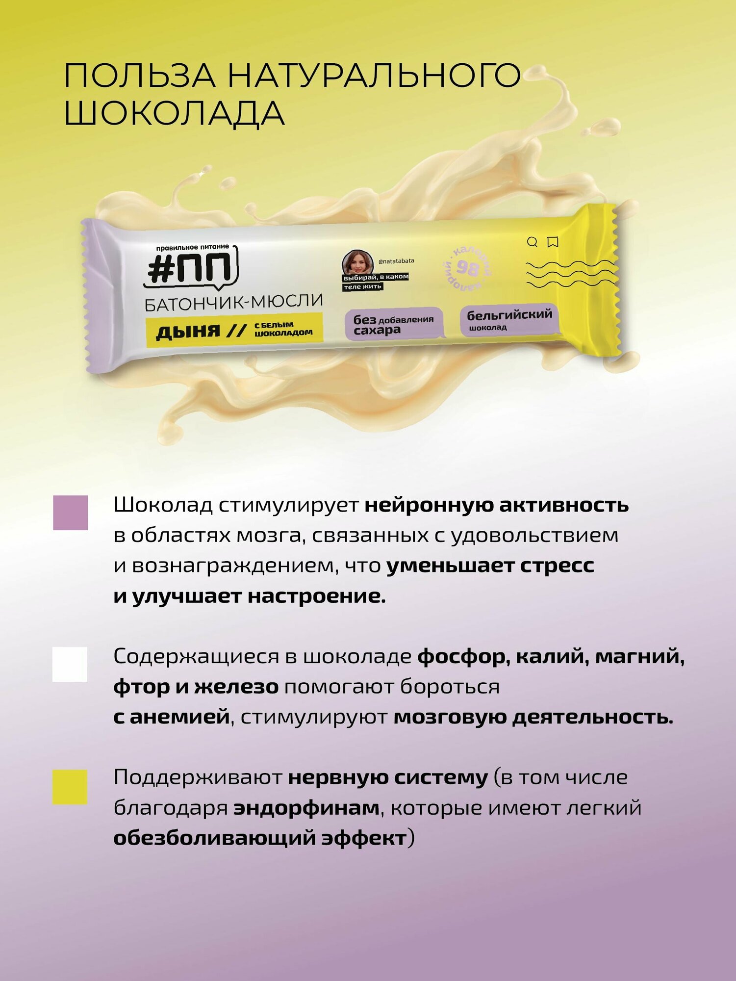 Батончики мюсли без сахара Дыня с белым бельгийским шоколадом 6 шт по 30 гр информация: