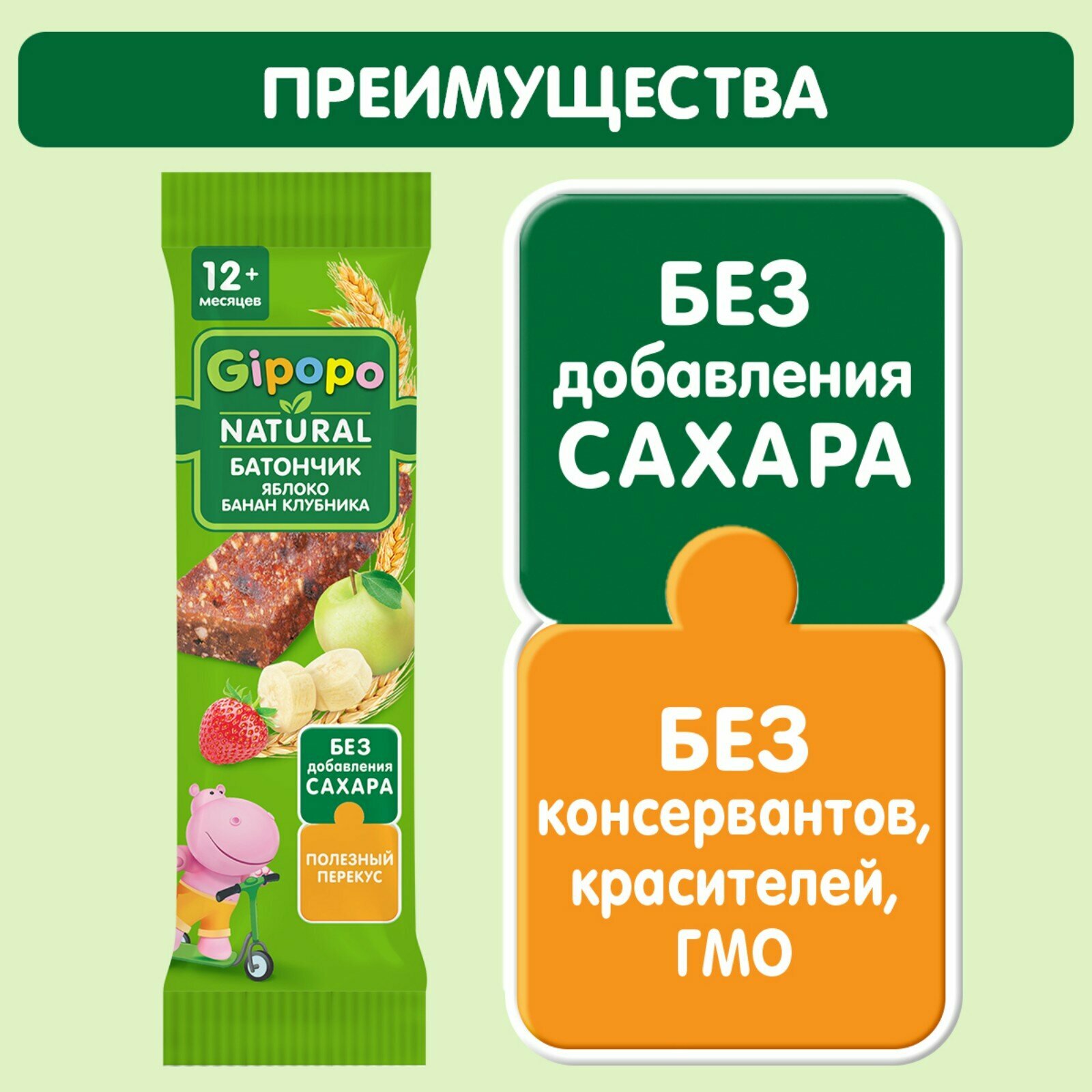 10 цен на Gipopo - батончик злаковый детский яблоко, банан, клубника, 12 мес, 20гр, 18 штук