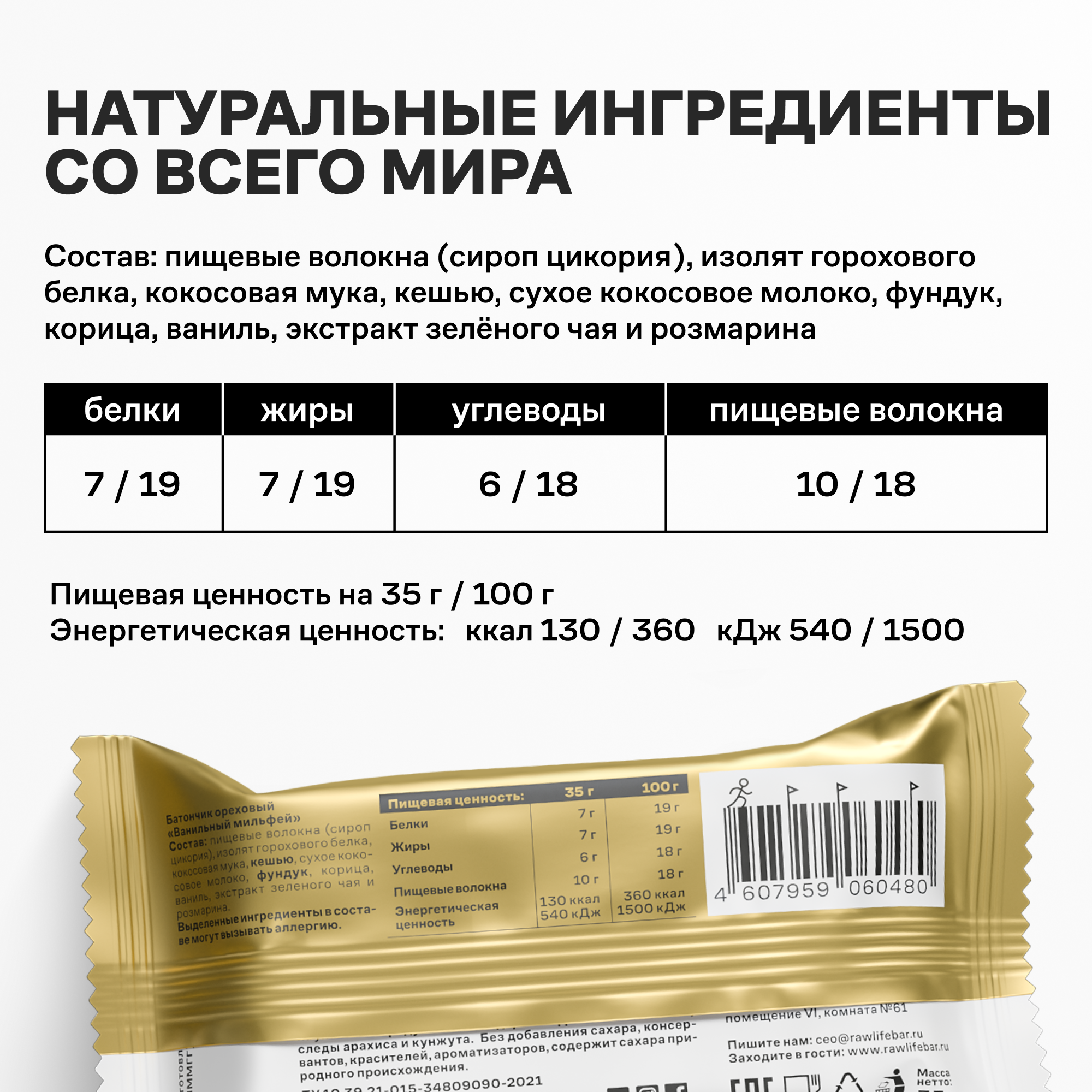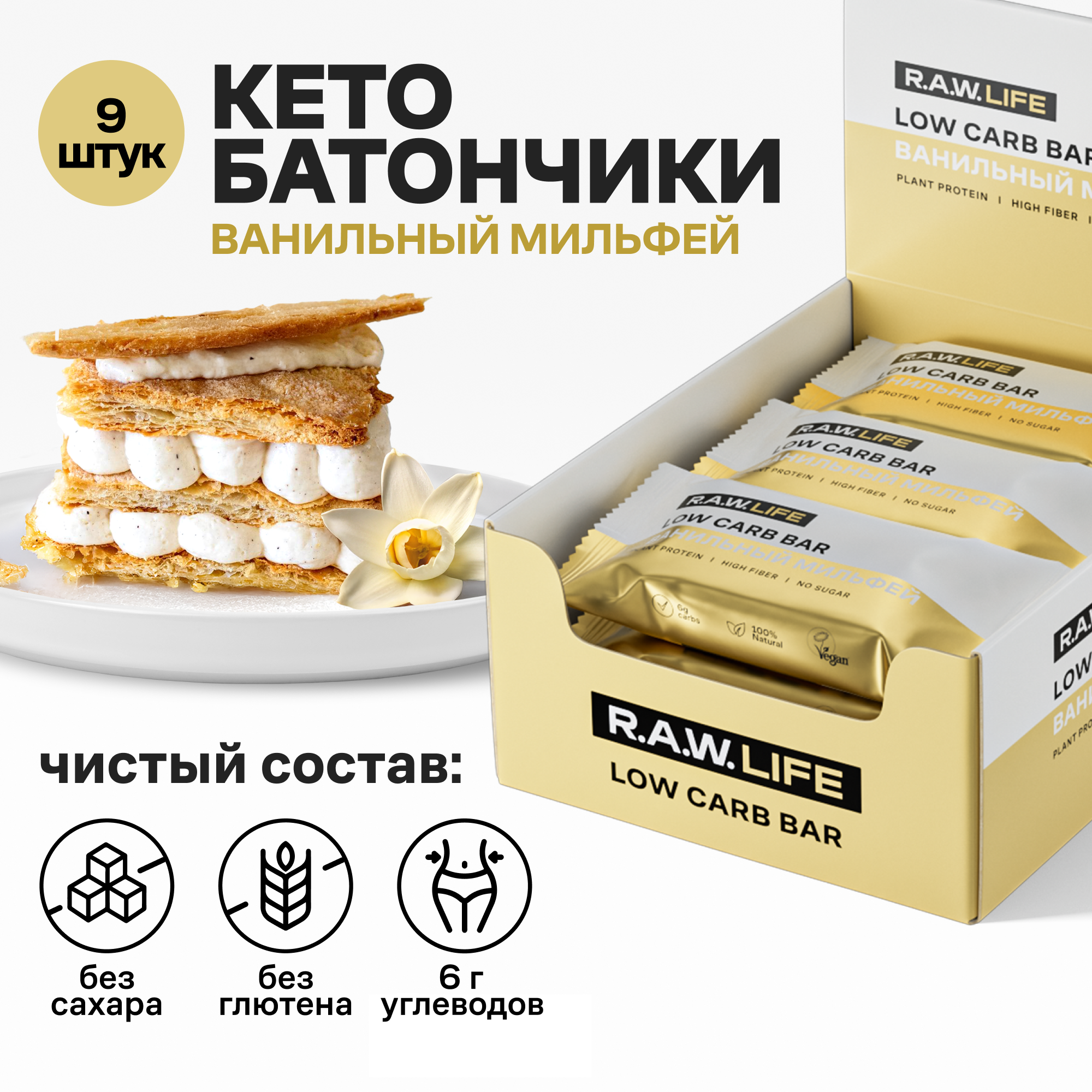 Батончики протеиновые низкоуглеводные LOW CARB BAR / Без сахара, глютена и лактозы / Ванильный мильфей, набор - 9 шт информация: