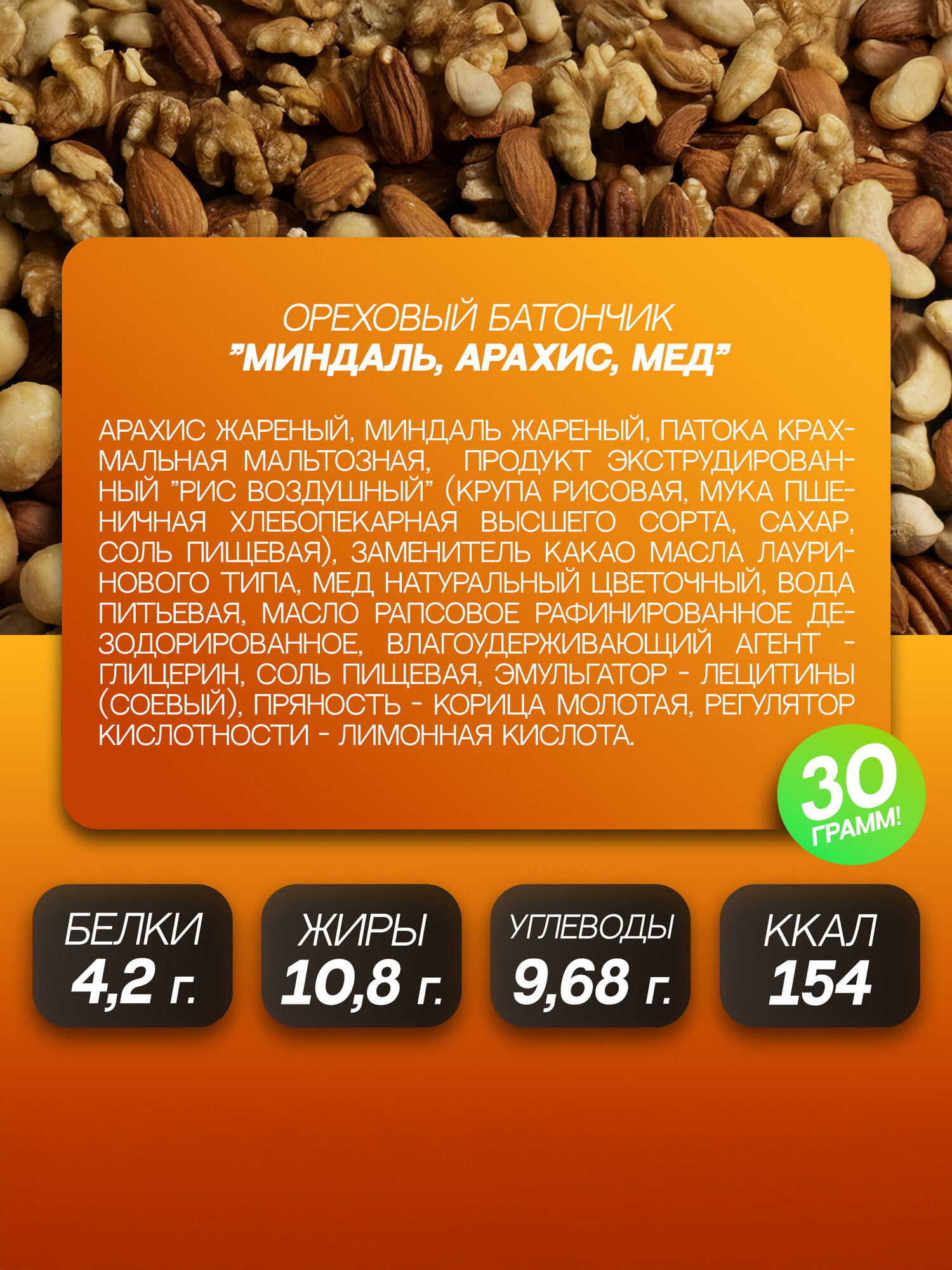 SOJ Nut bar mini, Протеиновые батончики, Миндаль и карамель с хрустящими шариками в натуральном шоколаде, 30г 20шт информация: