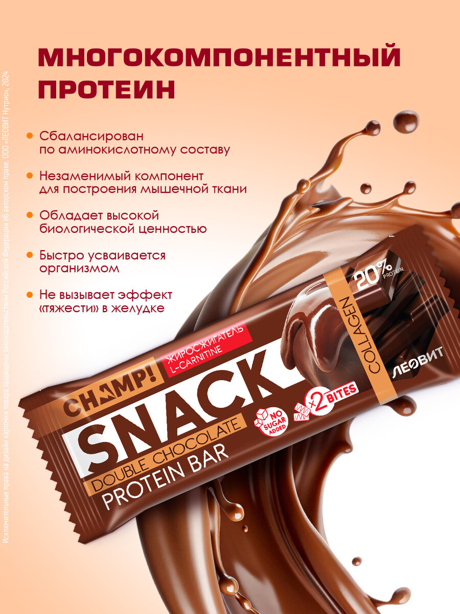 Протеиновые батончики Шоколадные без сахара 12 шт по 40 гр Champ Леовит 20% протеина с коллагеном информация: