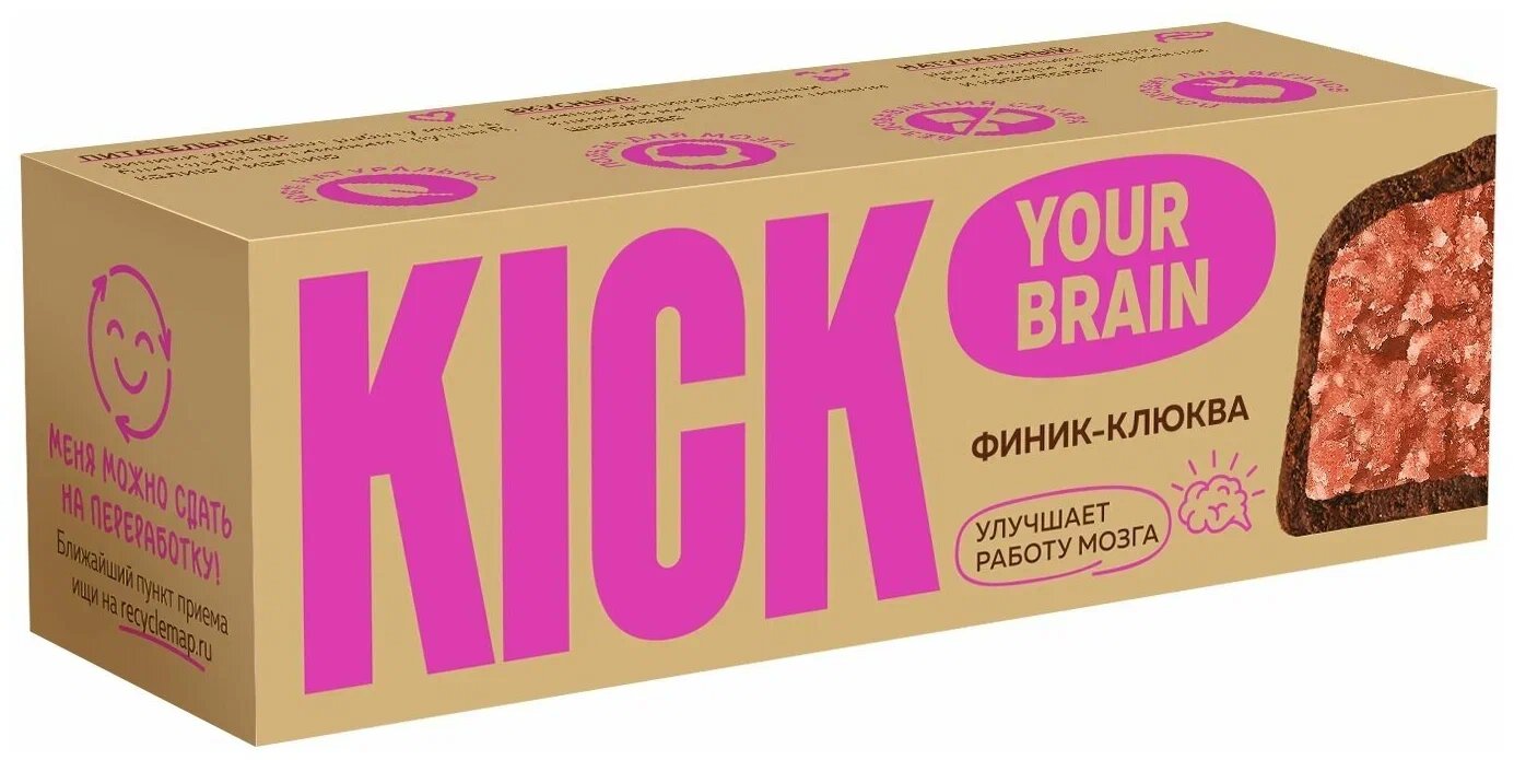 Батончик "KICK" финиковый с клюквой в шоколаде, 45 гр (2 шт. в наборе) информация: