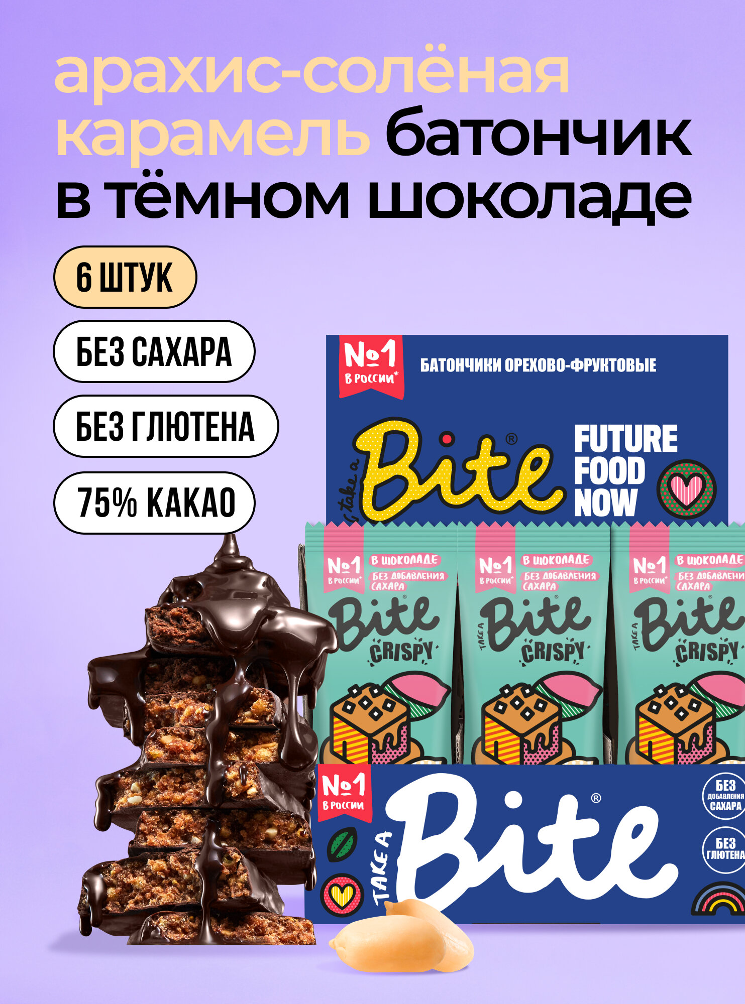 10 цен на Батончики без сахара Take a Bite Crispy, Арахис-Соленая карамель, 6 шт по 45 гр