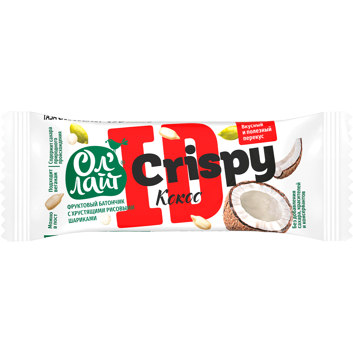 10 цен на Фруктовый батончик с хрустящими рисовыми шариками и кокосом, без добавления сахара