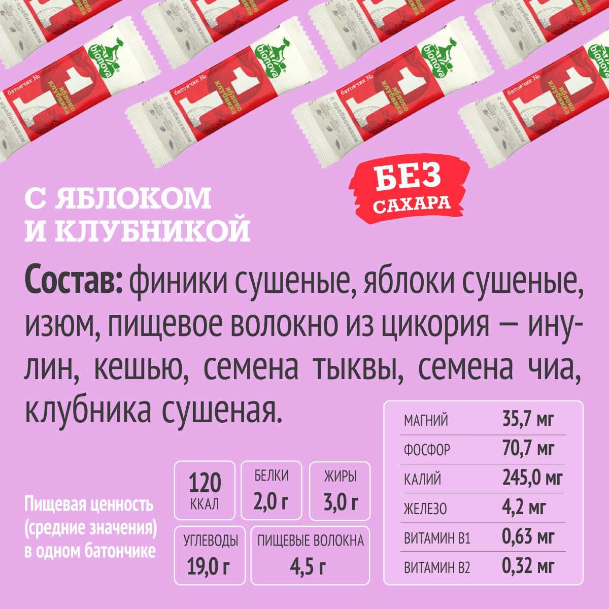 10 цен на Батончик фруктово-ореховый Бионова с яблоком и клубникой 35г по 24шт