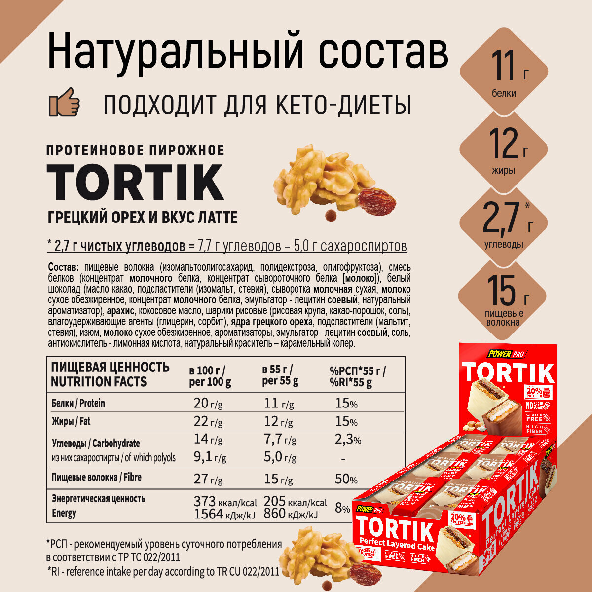 10 цен на Протеиновые пирожные без сахара Тортик "Грецкий орех - латте", 12 шт