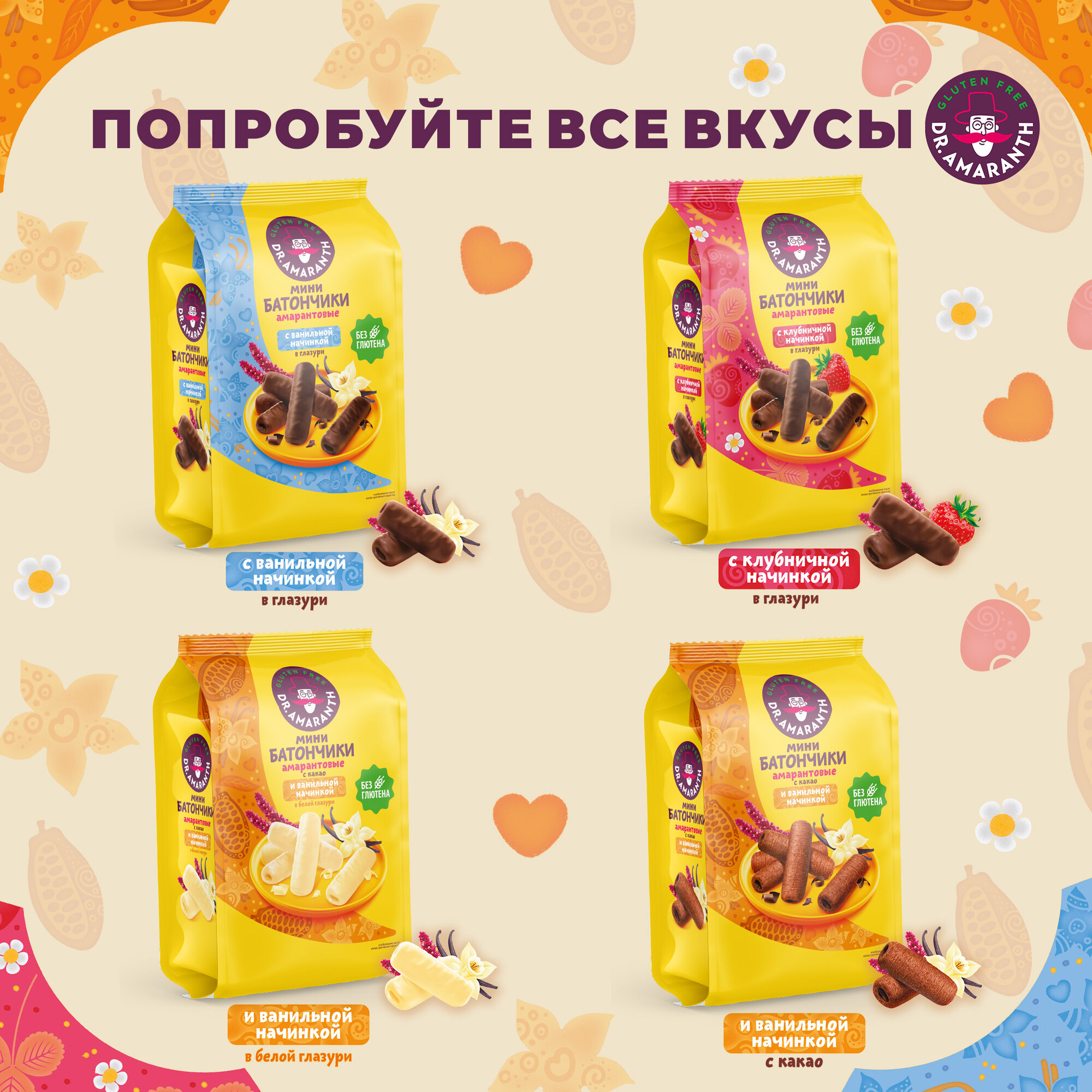 Мини-батончики без глютена "DR.AMARANTH" с ванильной начинкой в белой глазури, 3шт по 100г информация: