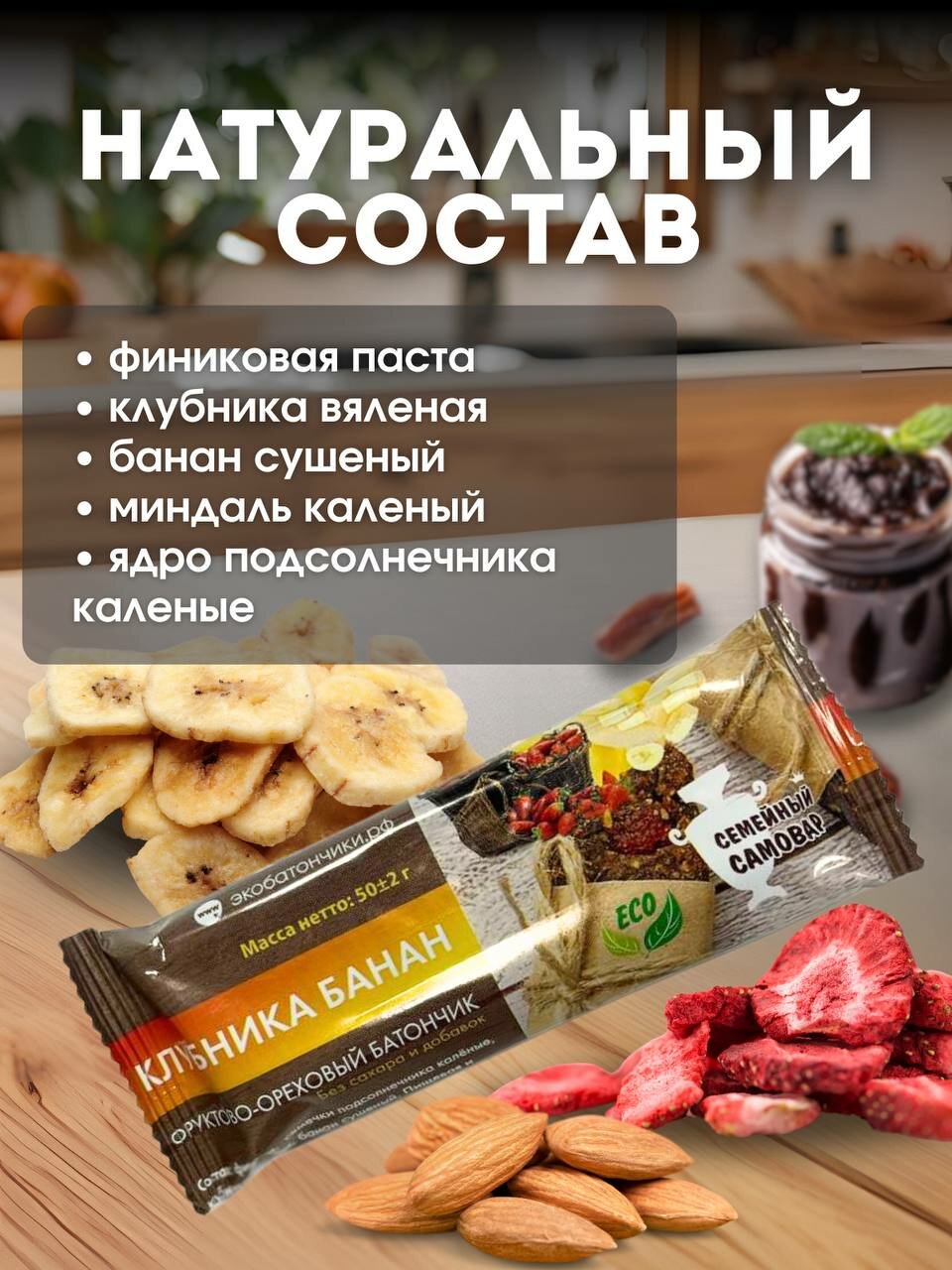 Батончик без сахара Фруктово-Ореховый "Клубника банан" 50 гр 15шт информация: